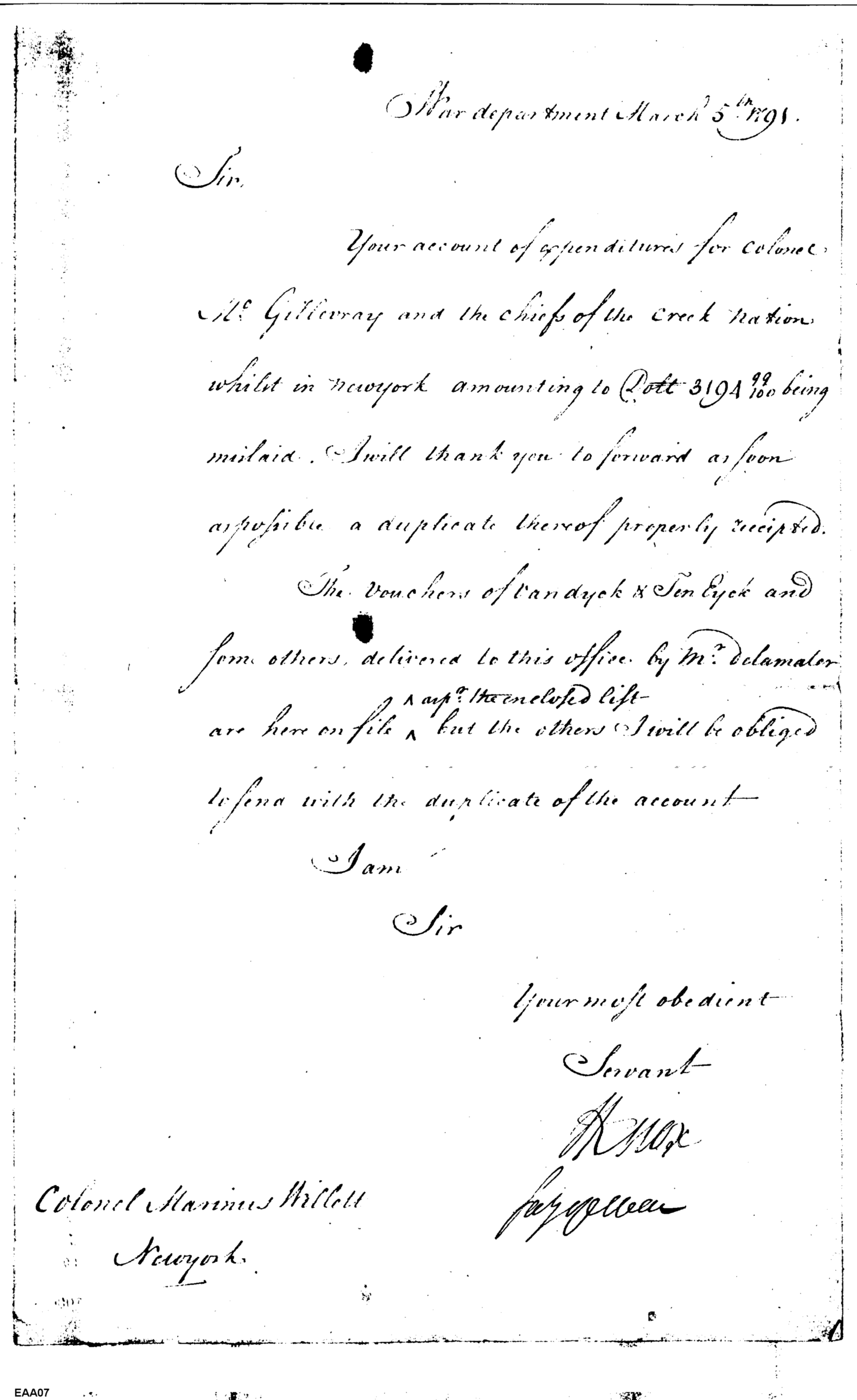 - Document: Expenditures for McGillivray & the Chiefs of the Creek Nation