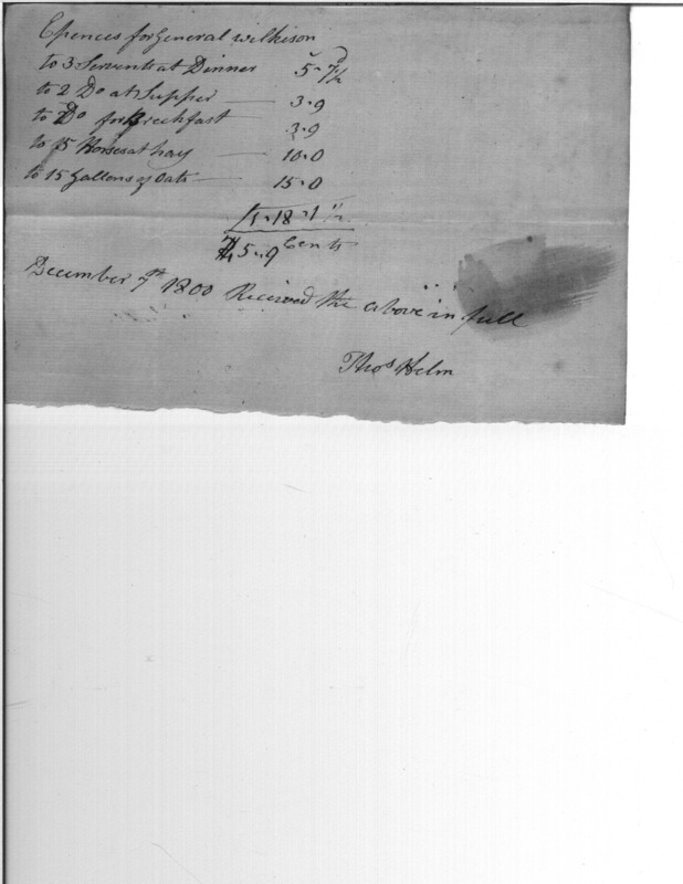 - Document: Expenses for General Wilkinson's Servants at Williamsport
