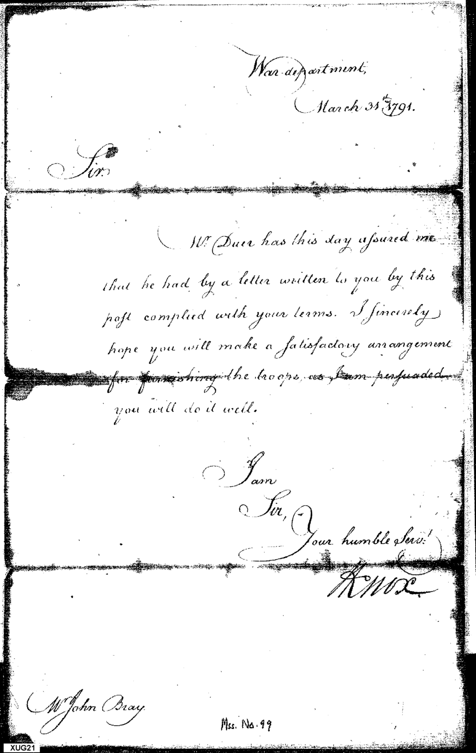 - Document: Arrangement for Furnishing the Troops