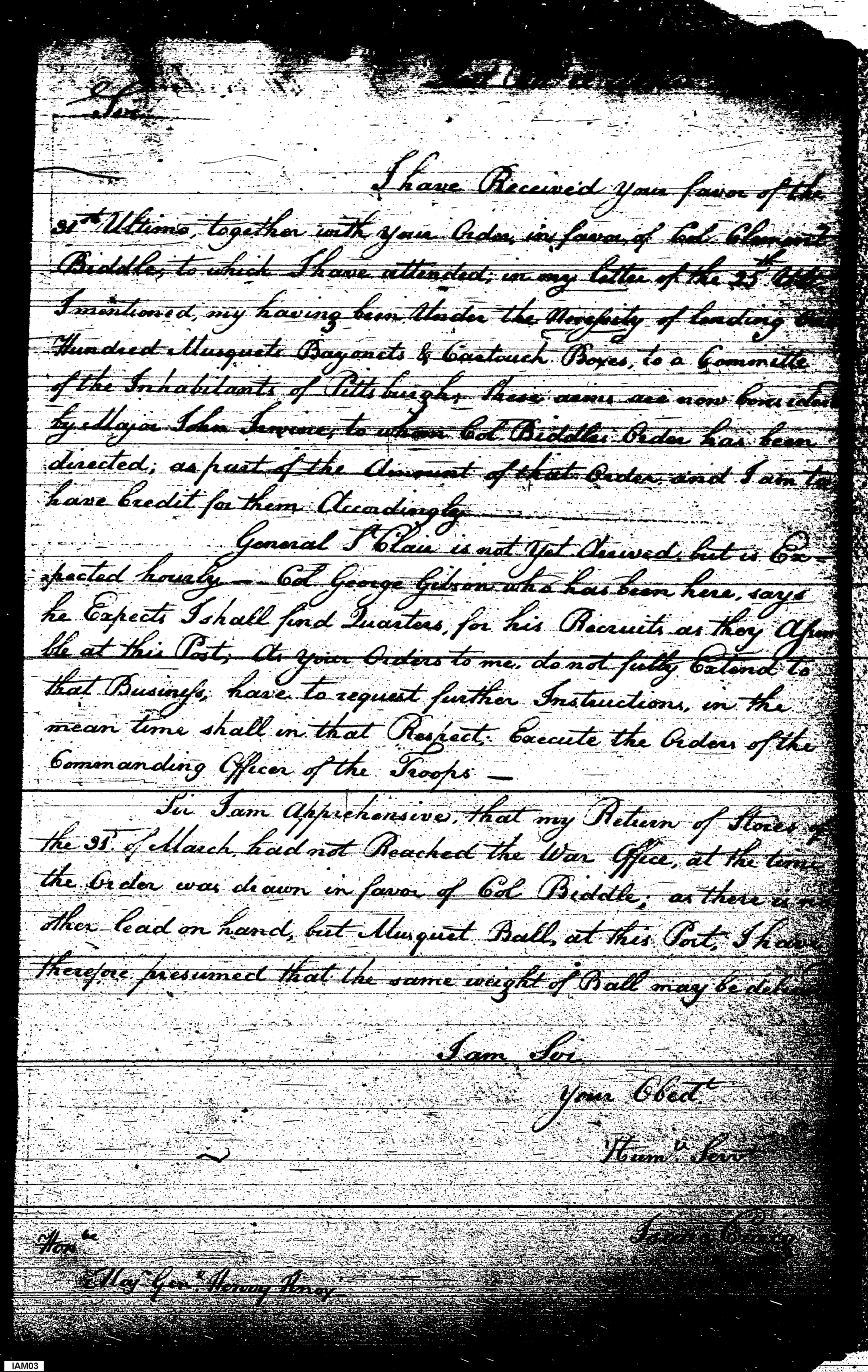 - Document: Craig gives to Knox an updated status of stores held at Fort Pitt
