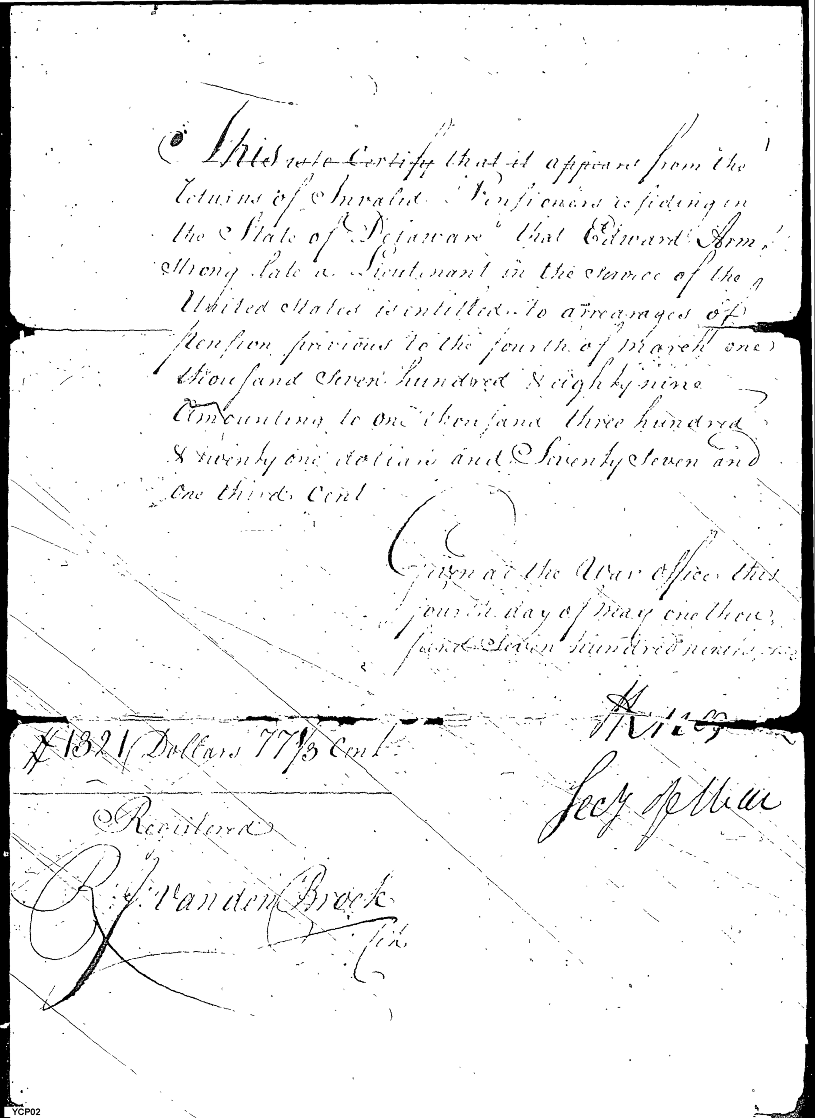 - Document: Certification of Arrears due Edward Armstrong