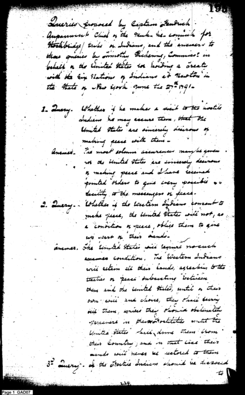 - Document: Queries by Captain Hendrick to Stockbridge Indians