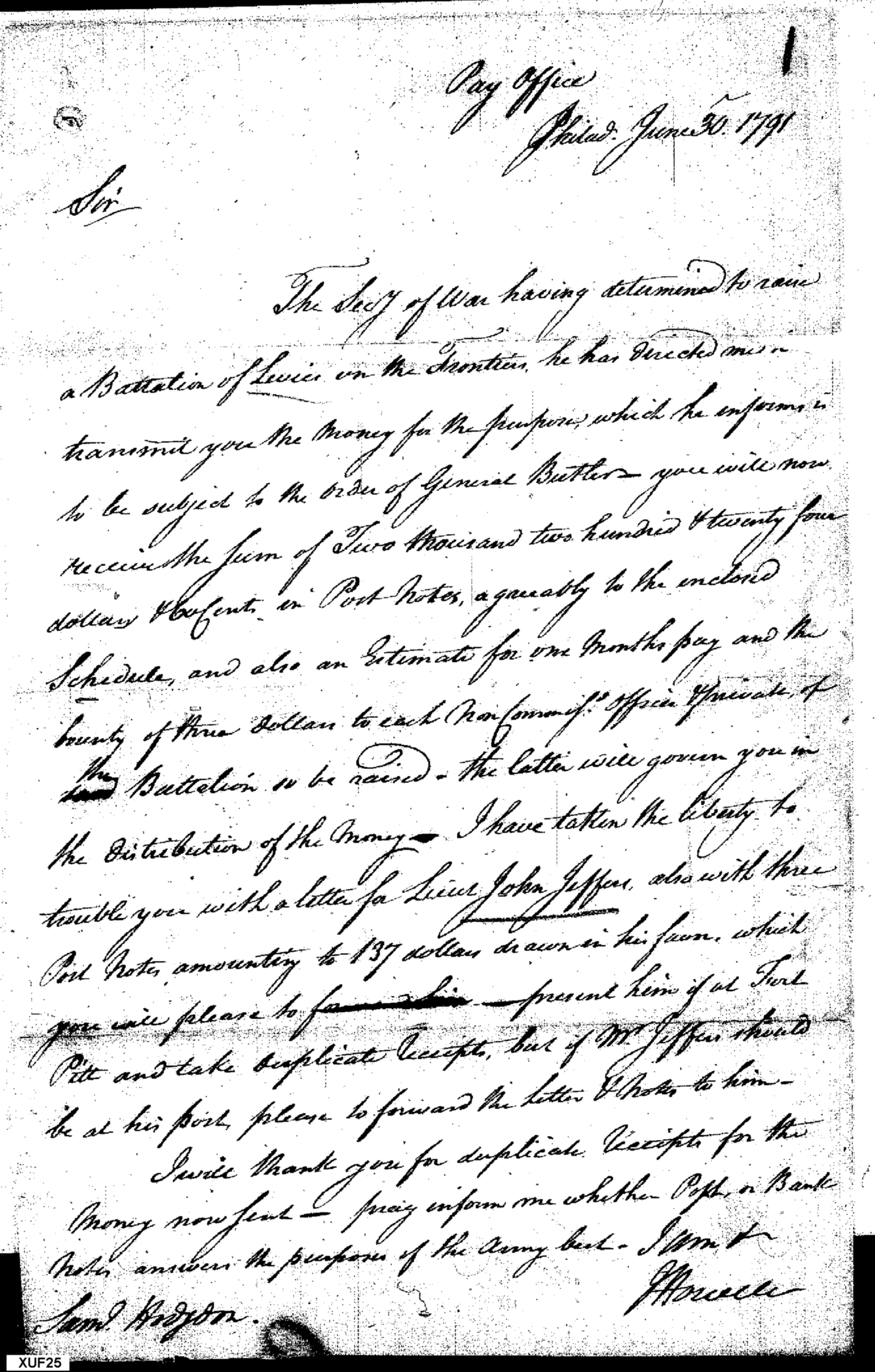 Document ViewerMoney for a Battalion of Levies on the Frontier