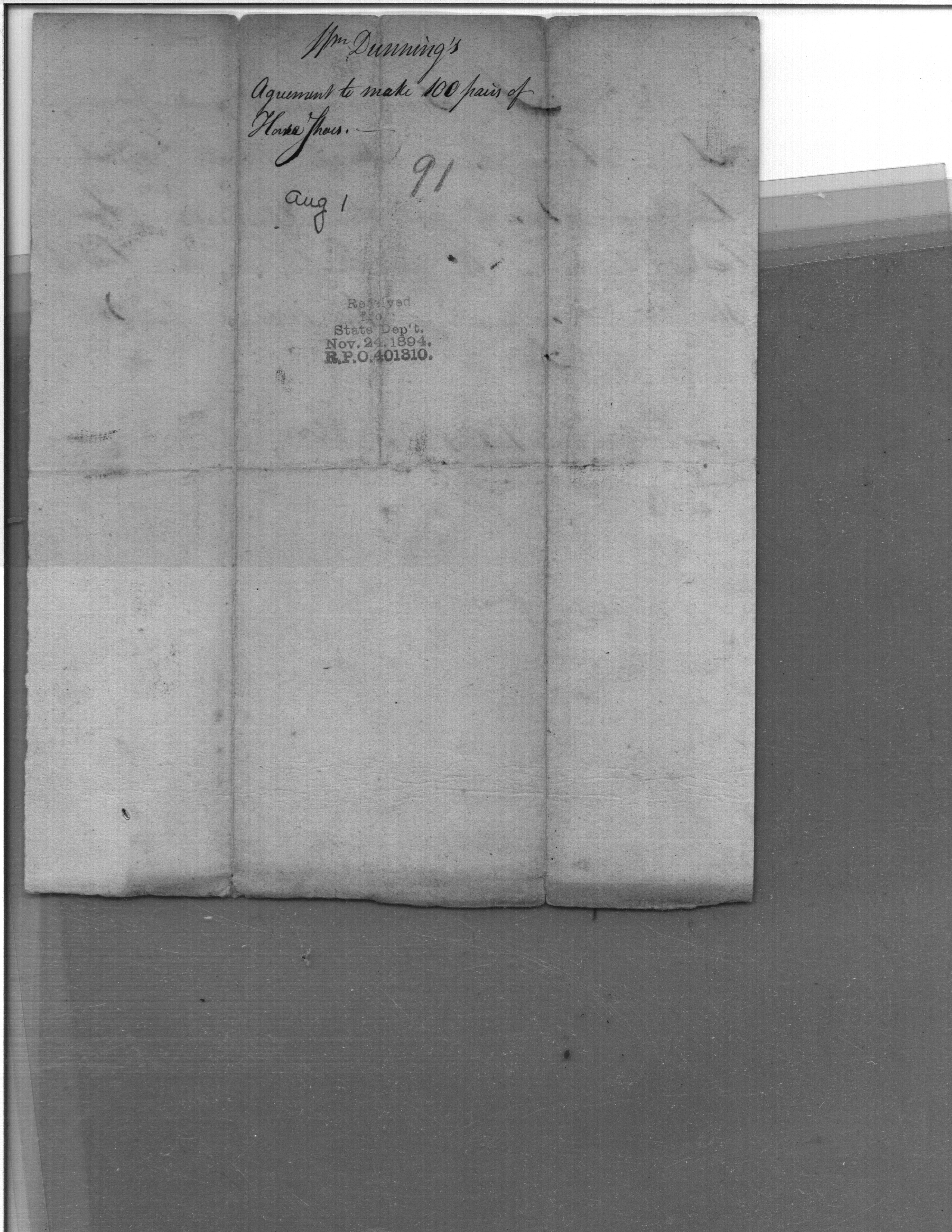 - Document: Agreement of William Dunning with Samuel Hodgdon to make horseshoes.