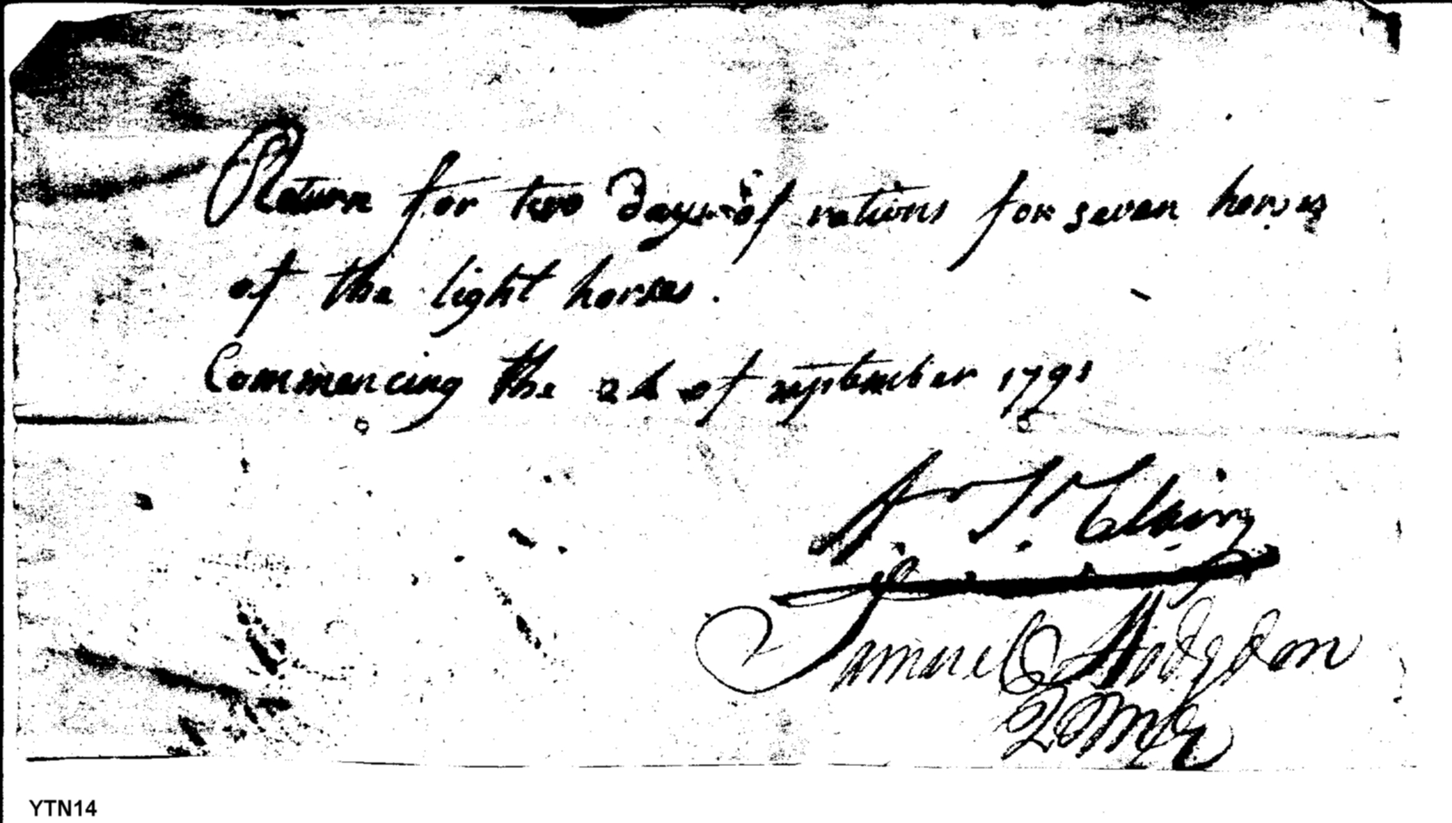 - Document: Ration Order for Horses of the Light Horses.