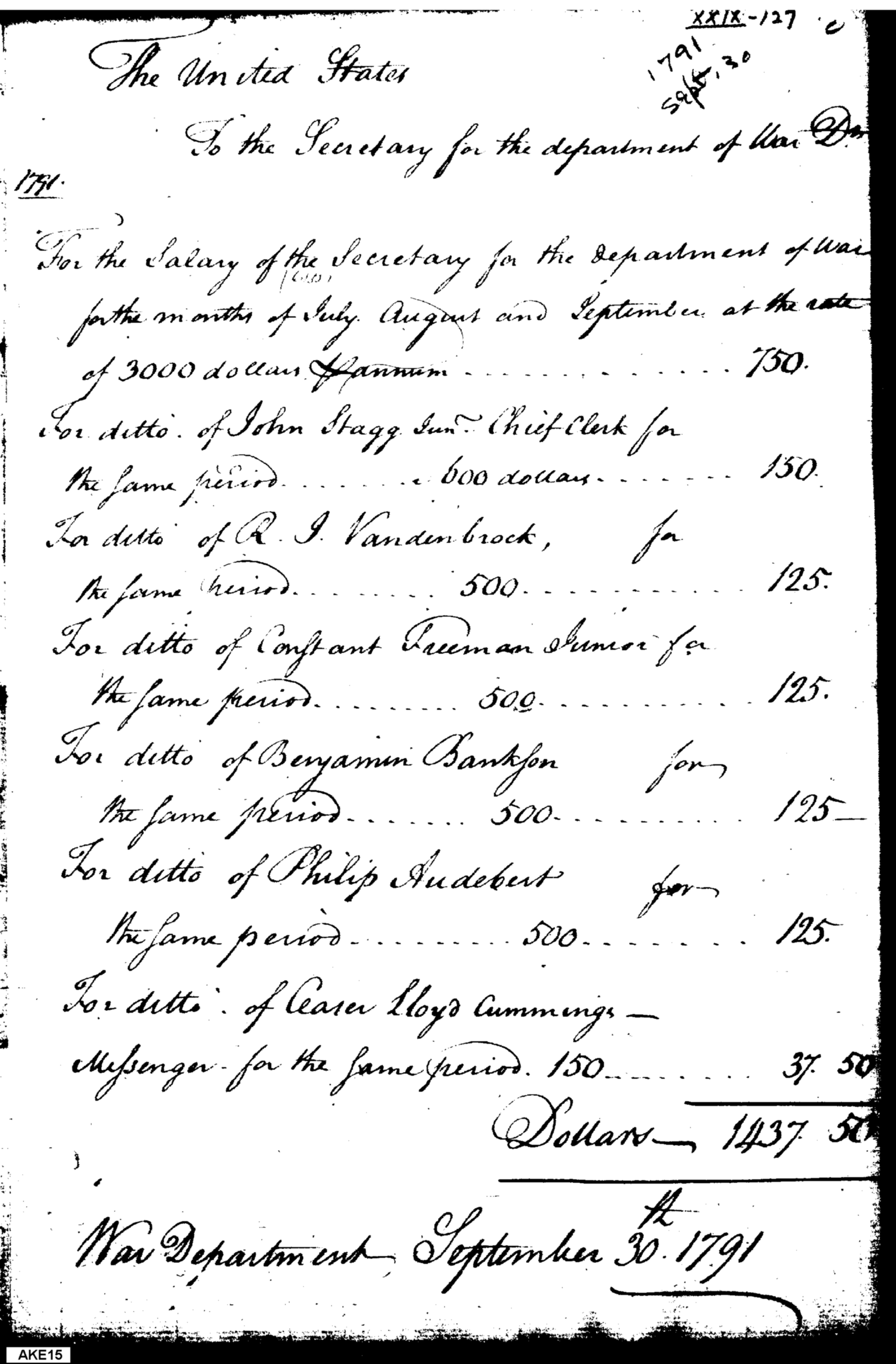 - Document: Pay warrant and receipt for salaries