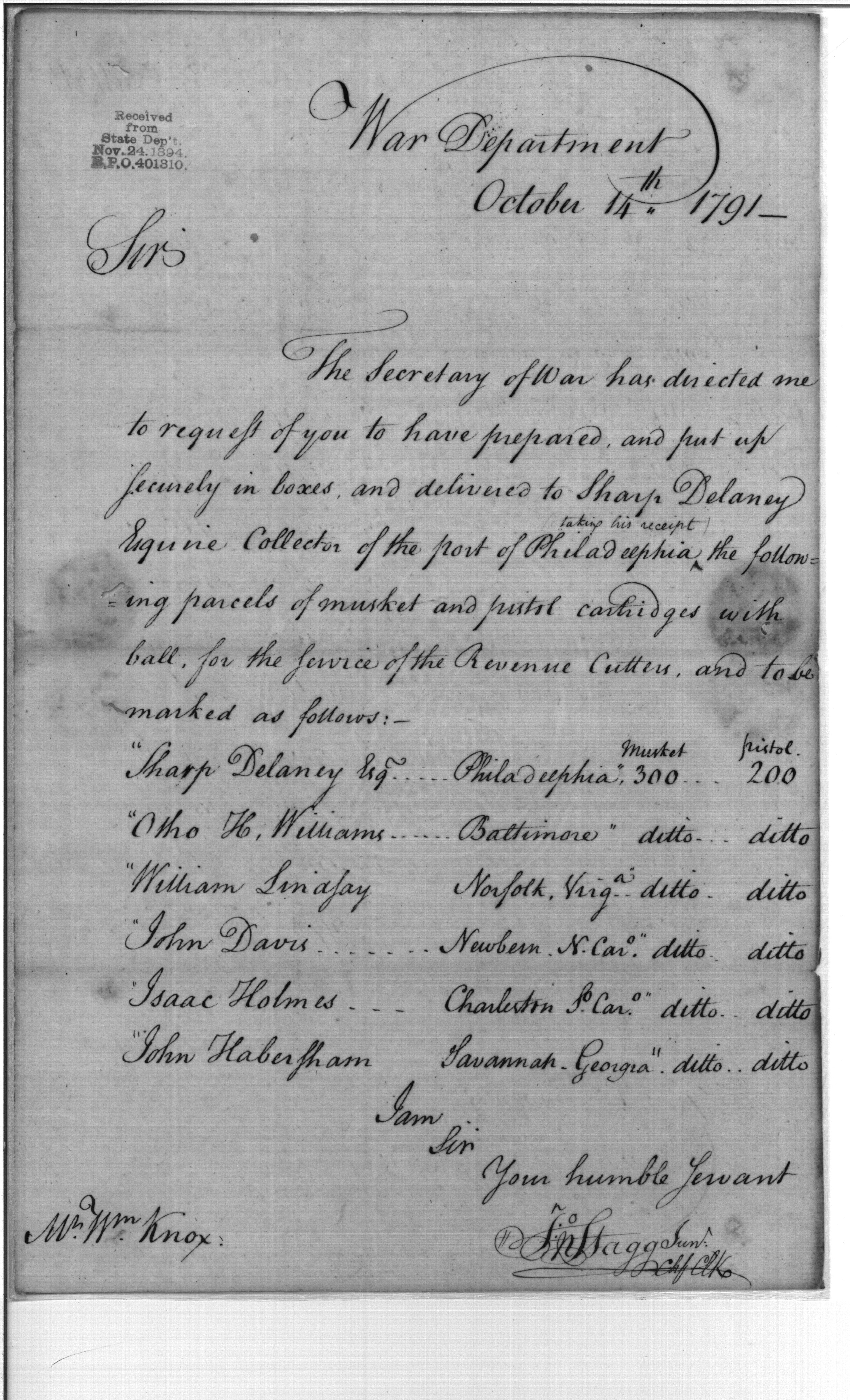 Post Revolutionary War Papers, 1784-1815. (RG94)