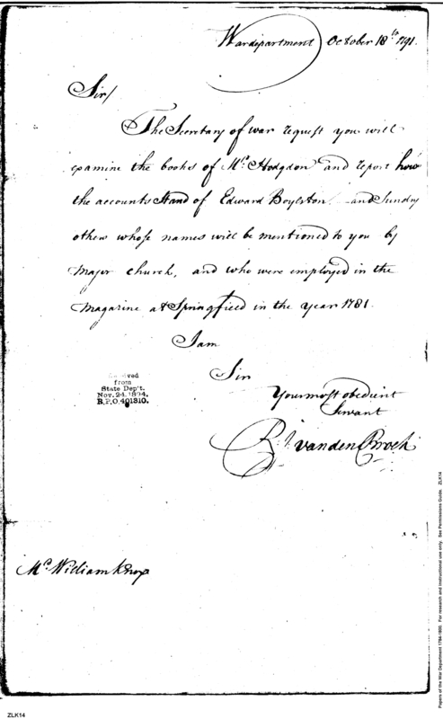 - In source: Collection: Post Revolutionary War Papers, 1784-1815. (RG94)