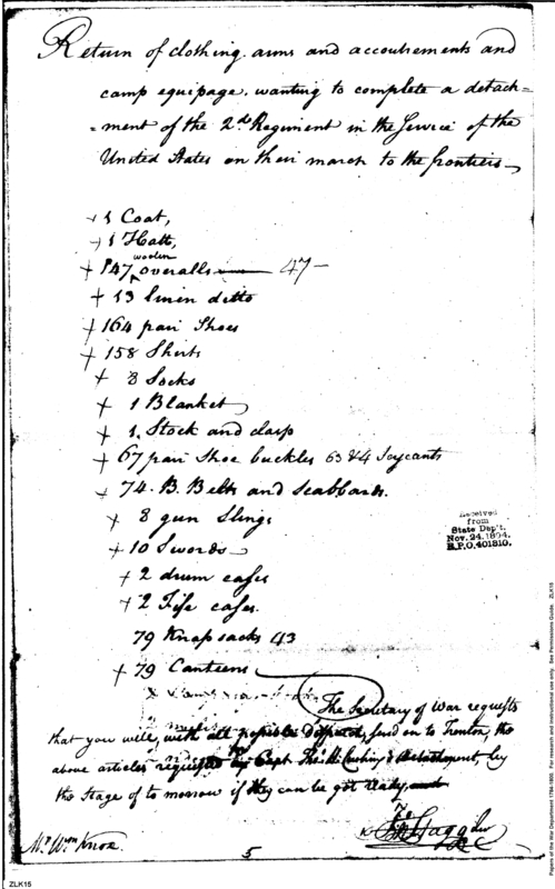 - In source: Collection: Post Revolutionary War Papers, 1784-1815. (RG94)