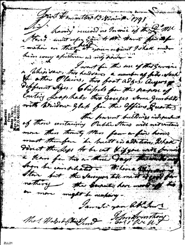 Post Revolutionary War Papers, 1784-1815. (RG94)