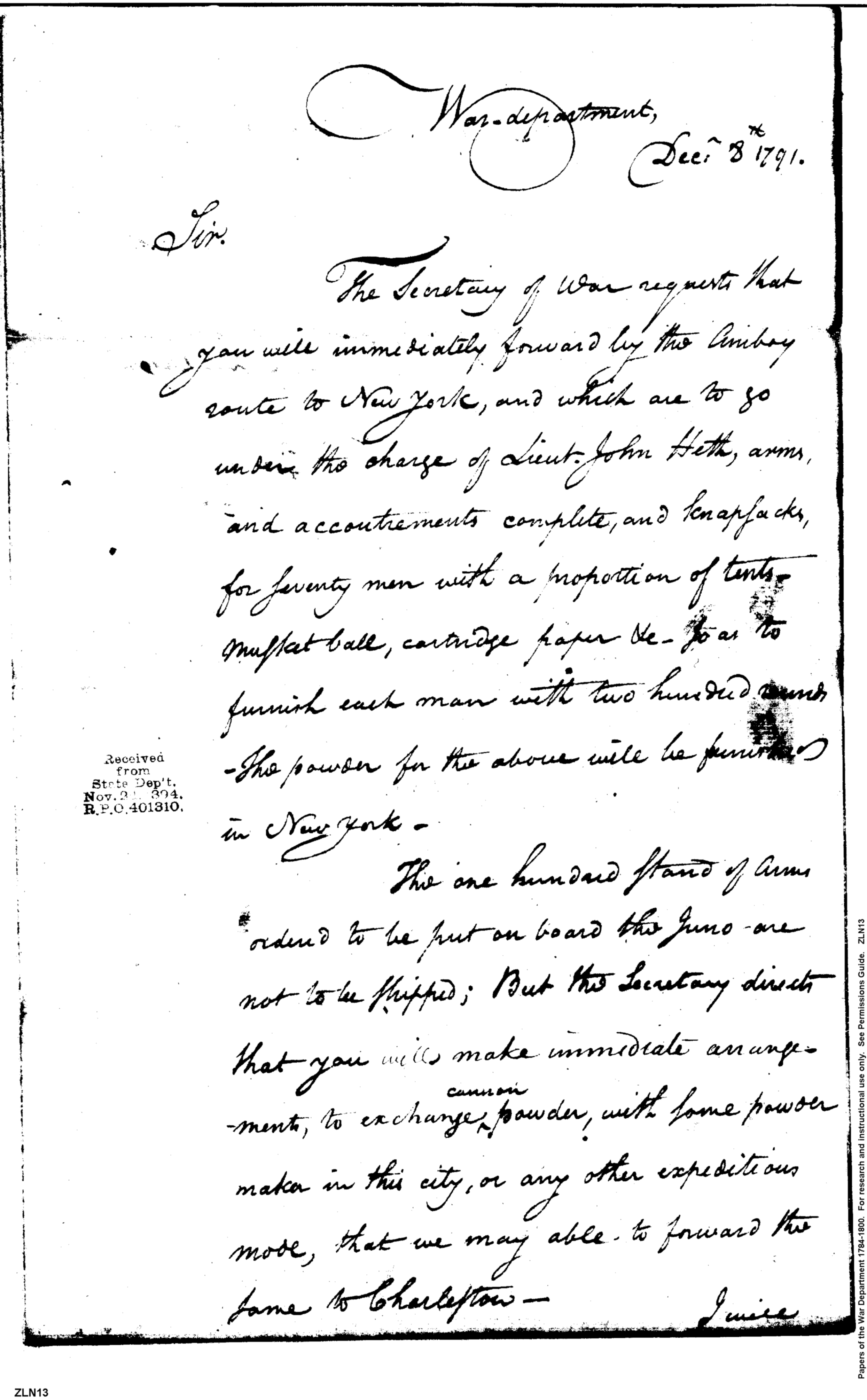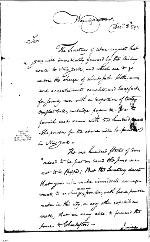- In source: Collection: Post Revolutionary War Papers, 1784-1815. (RG94)