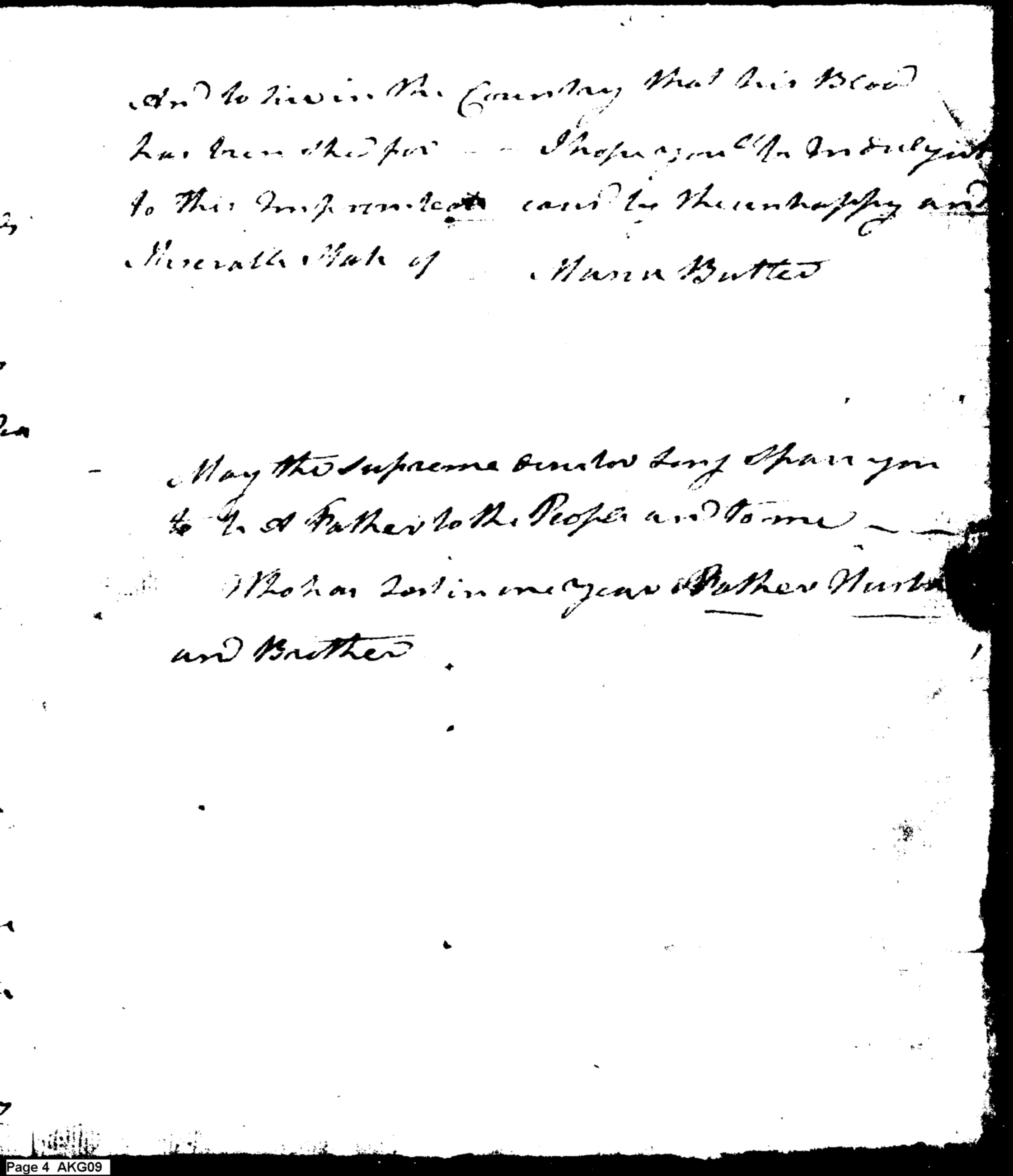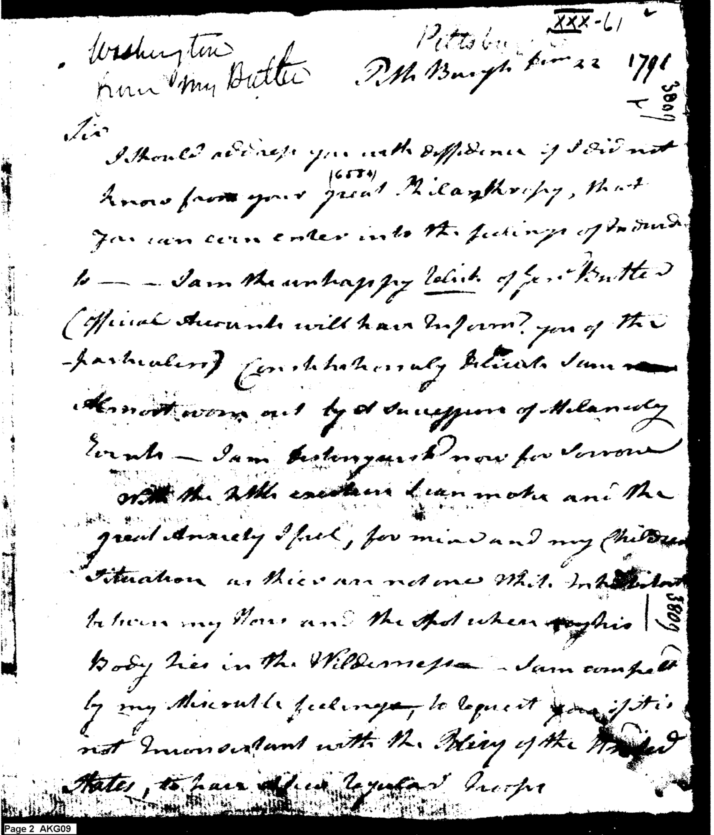- Document: Maria Butler speaks of the death of General Butler to Washington