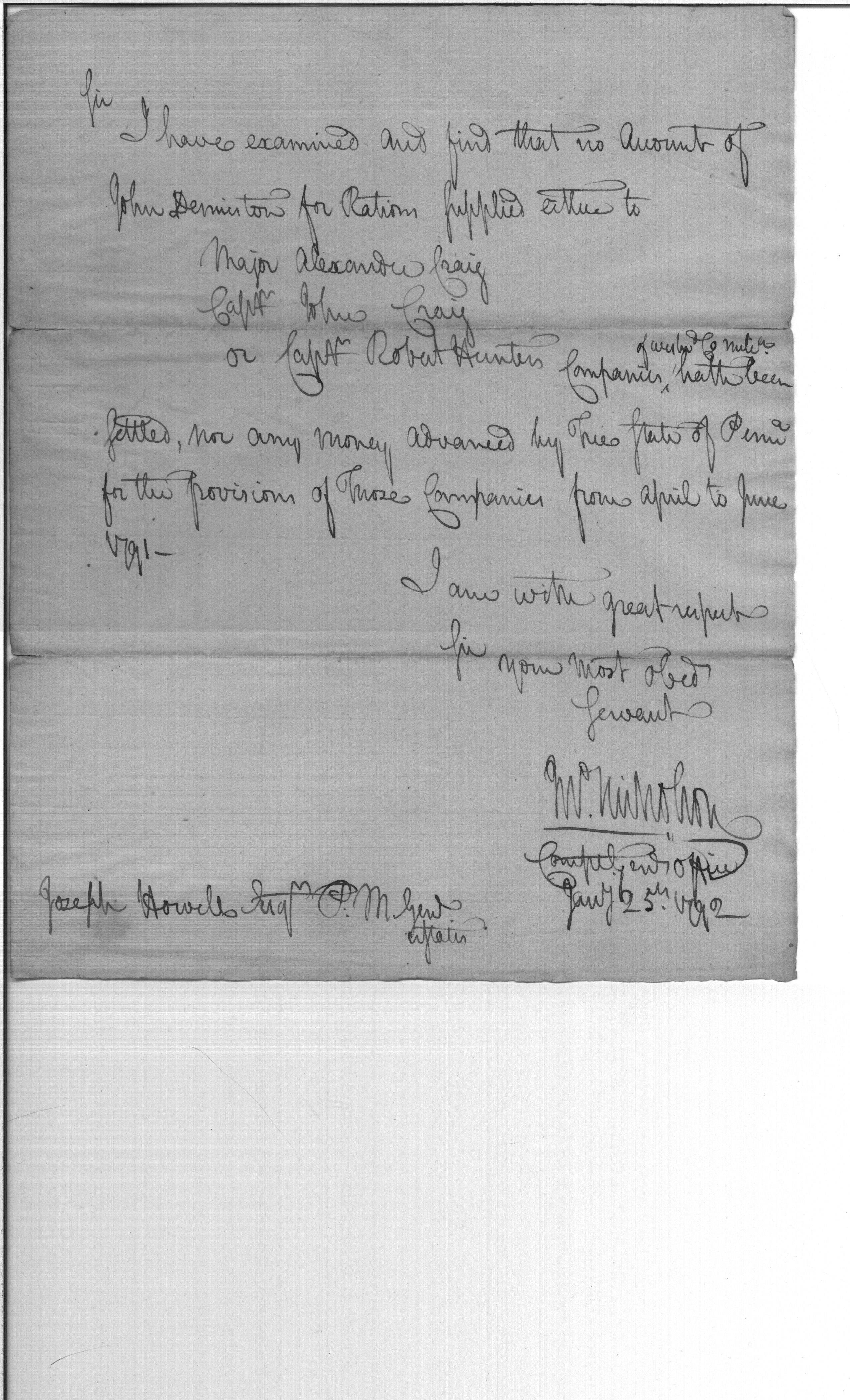 - Document: Rations for the Companies of Craig, Cray, and Hunter