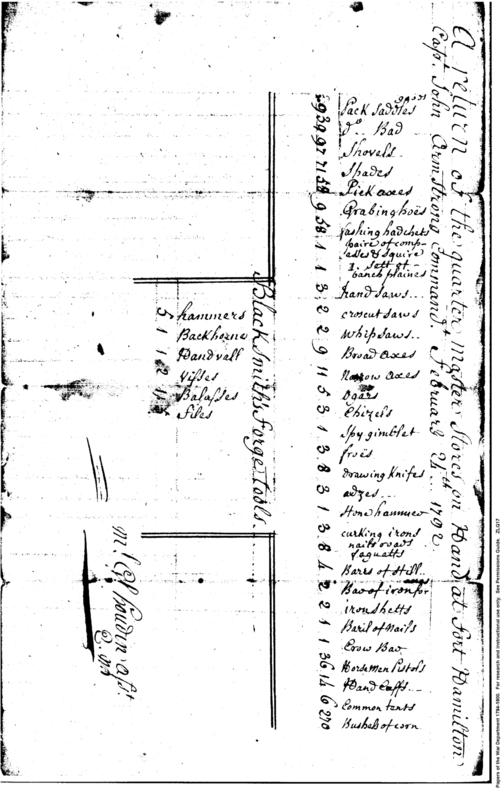- Document: Stores on Hand at Fort Hamilton.