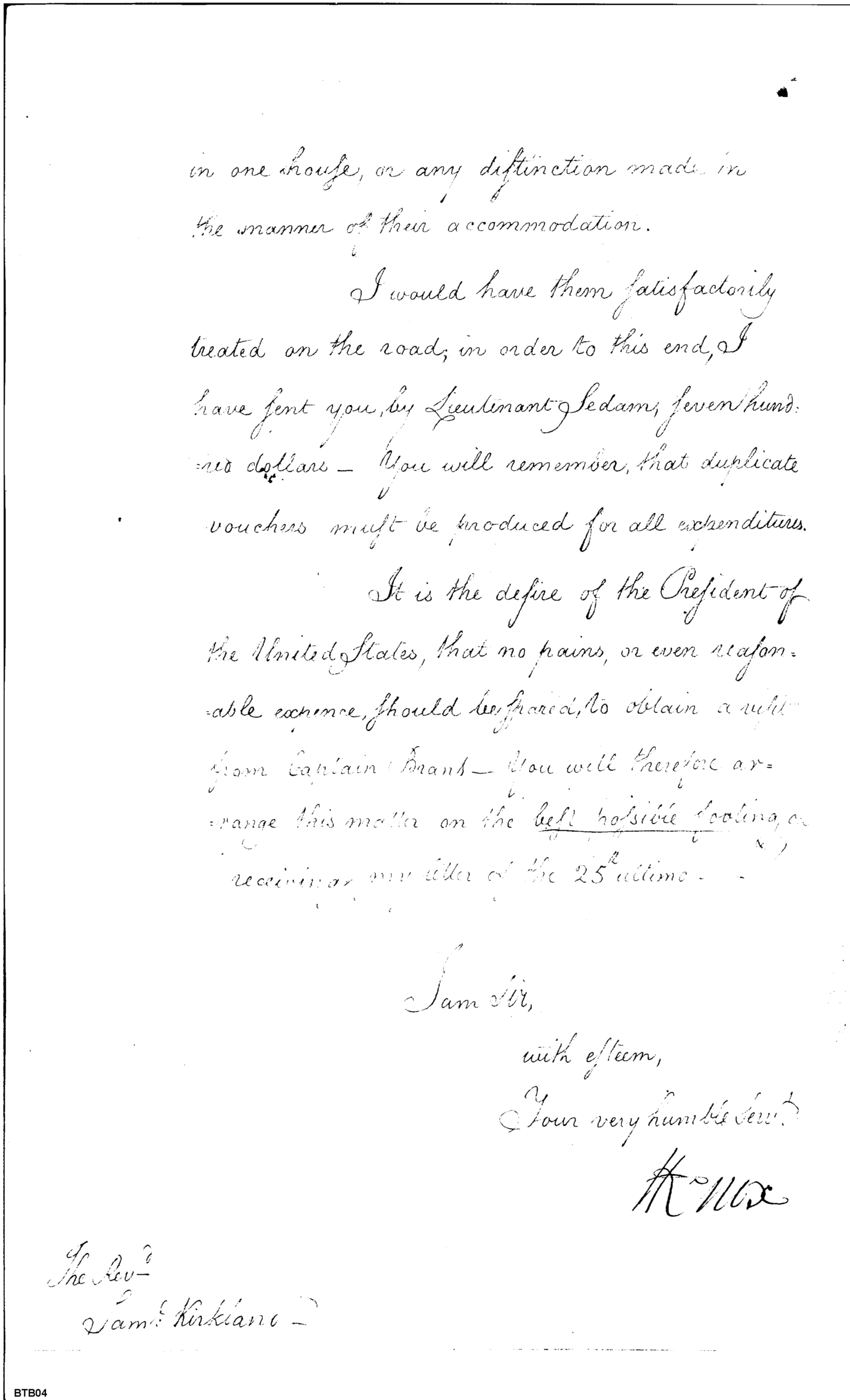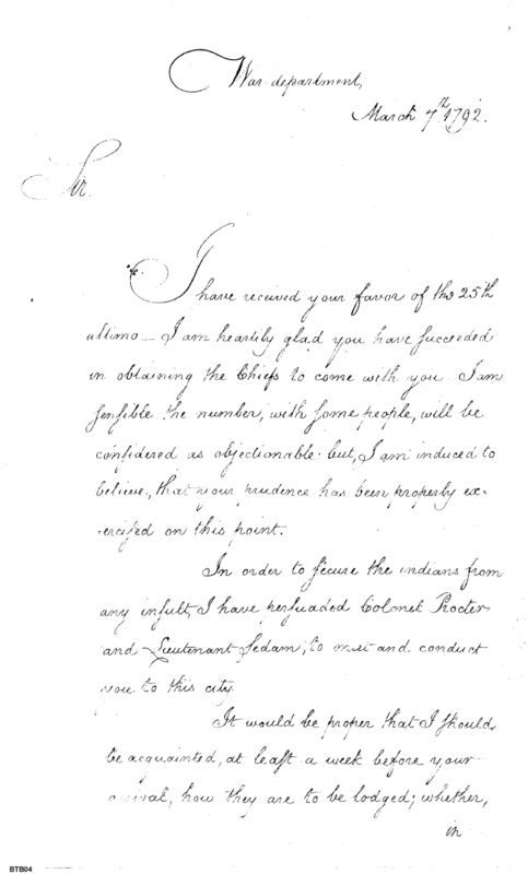 - Document: Letter from Secretary of War Henry Knox to the Reverend Samuel Kirkland on the transportation of delegation of Chiefs and Warriors to Philadelphia