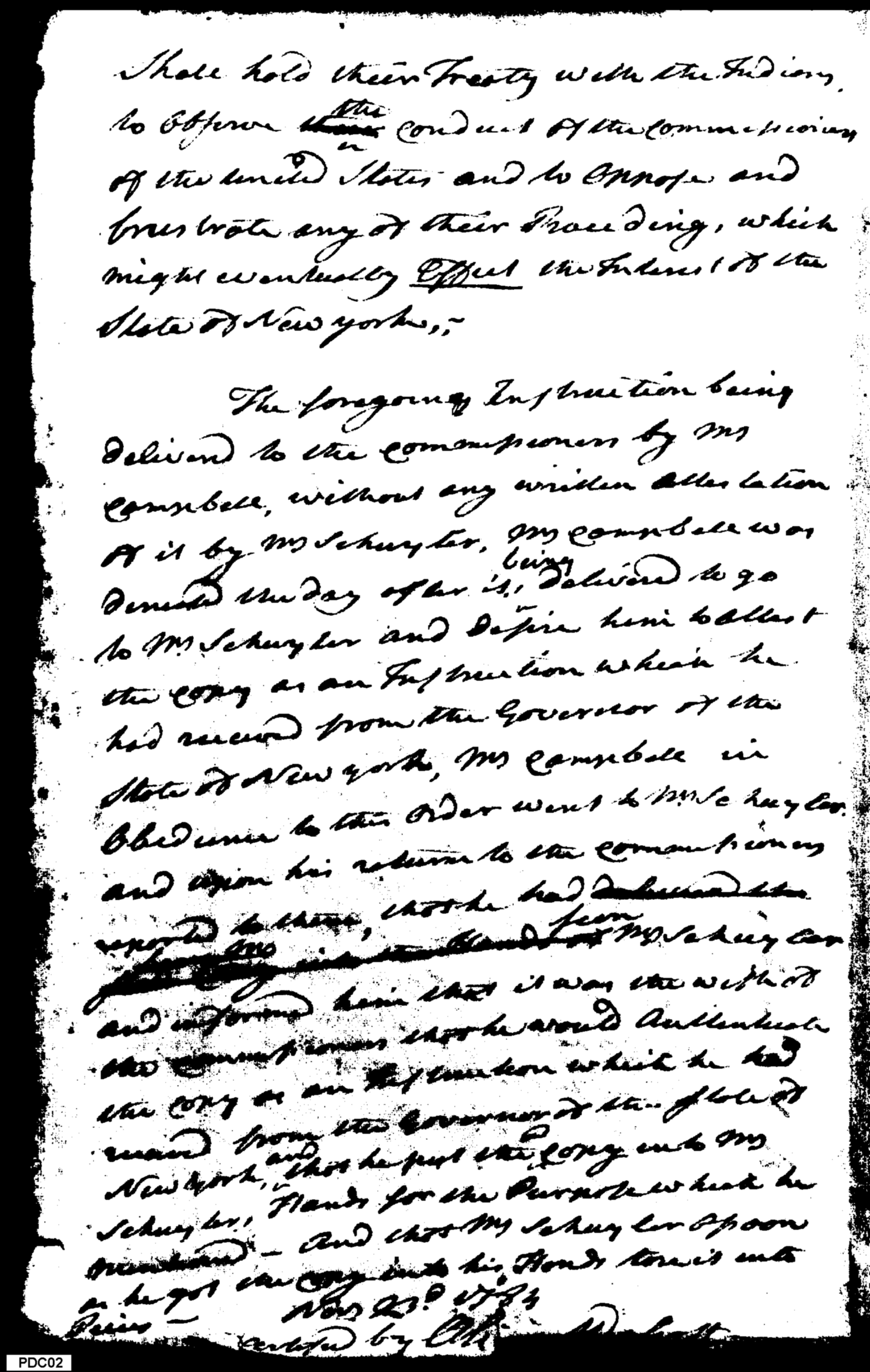 - Document: Reports Offensive Conduct of Peter Schuyler at Fort Stanwix with Indian Treaty