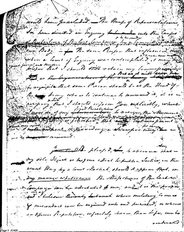 - Document: Regarding Court of Inquiry & Resignation of General St. Clair