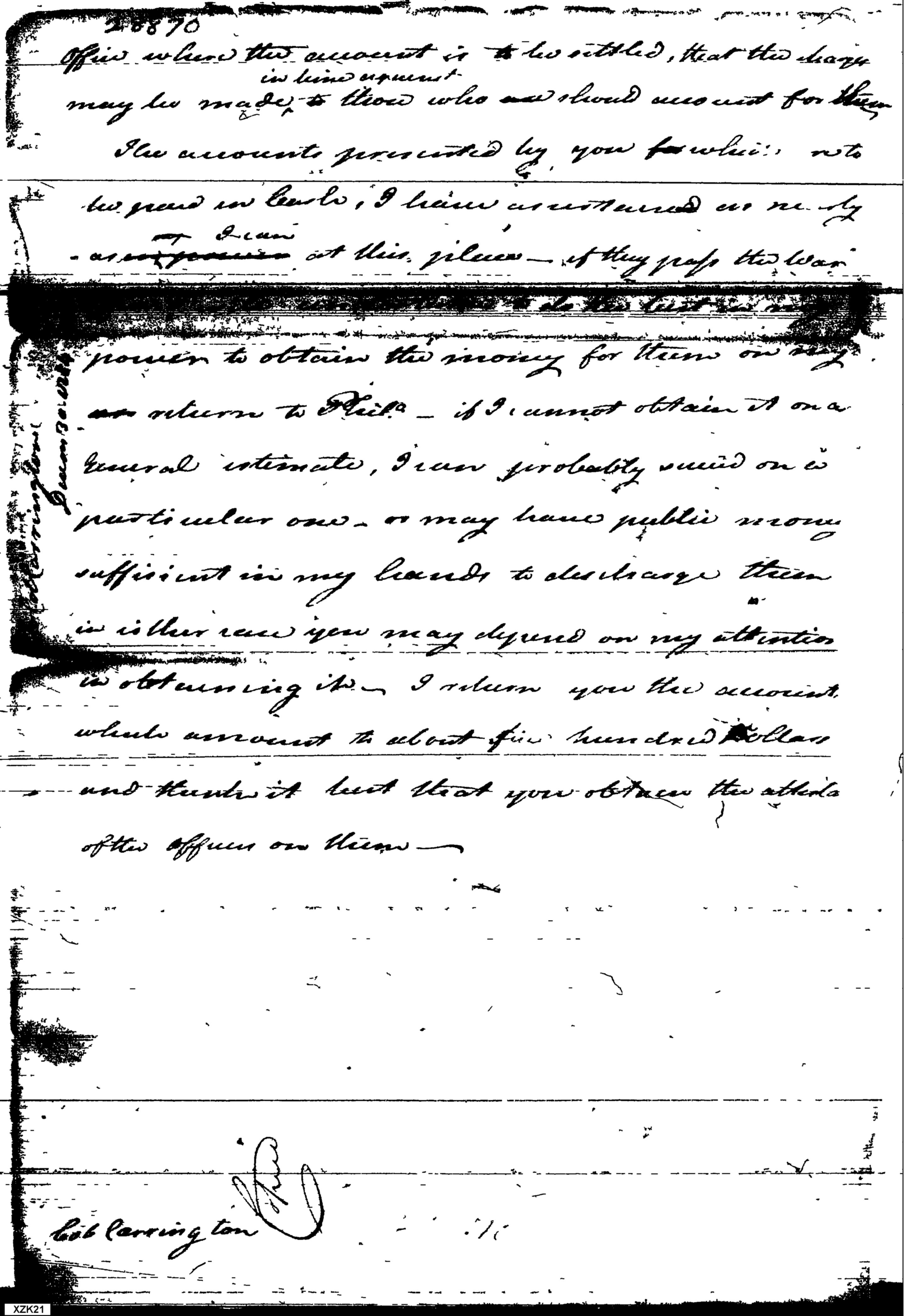 - Document: Letter from the Commissioner of Army Accounts