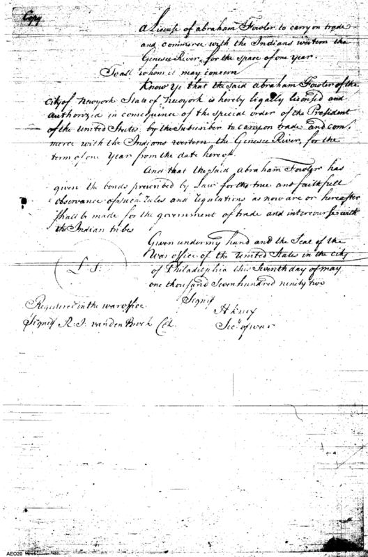 - Document: Knox issues license to trade with the Six Nations to Abraham Fowler