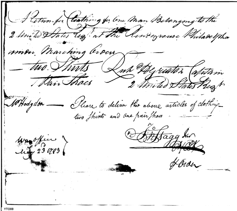 - Document: Return of clothing for one man of 2d United States Regiment