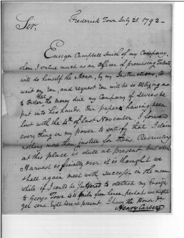 - Document: Request for pay despite records lost during St. Clair defeat