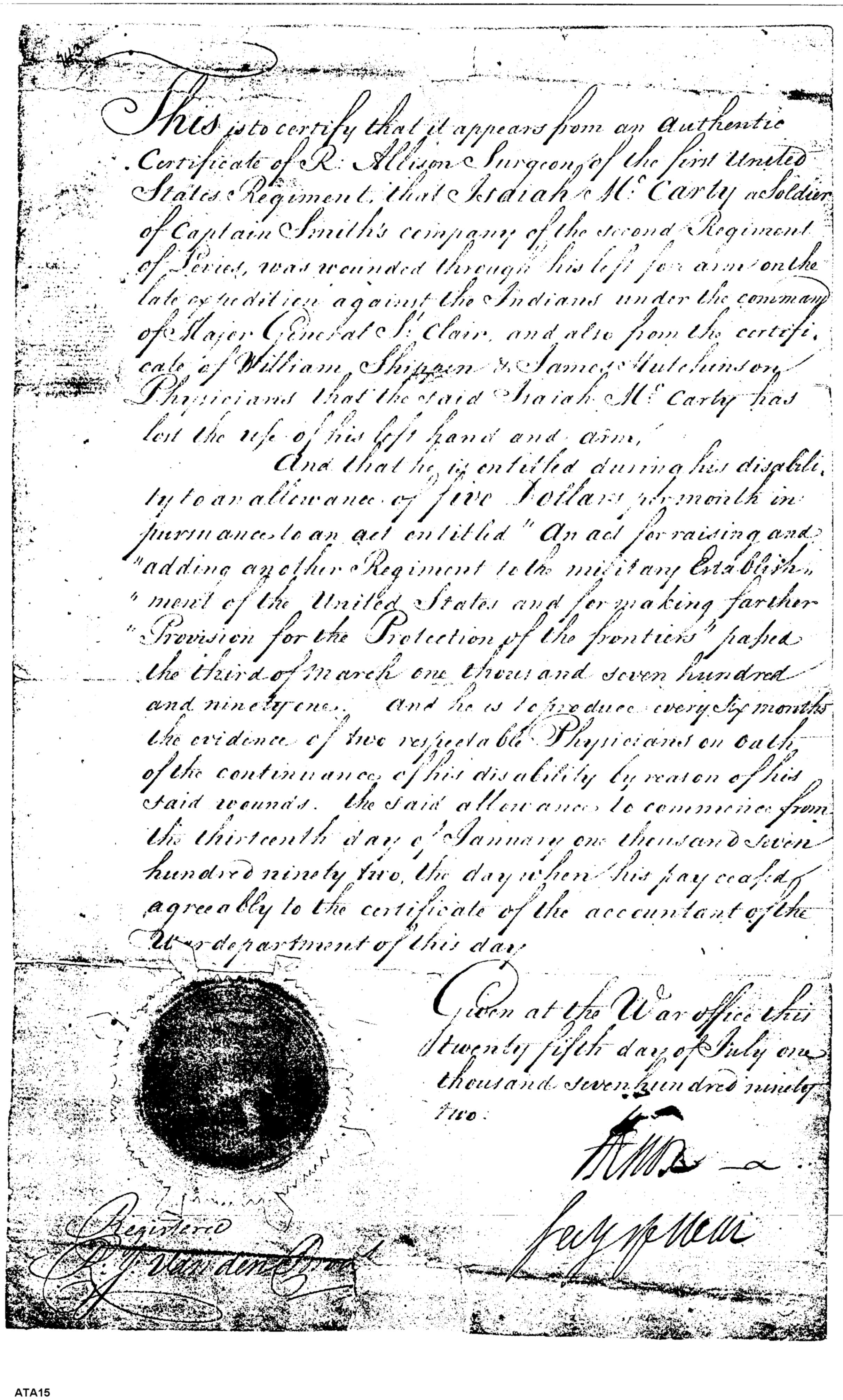 - Document: Certificate of Disability incurred during St. Clair expedition