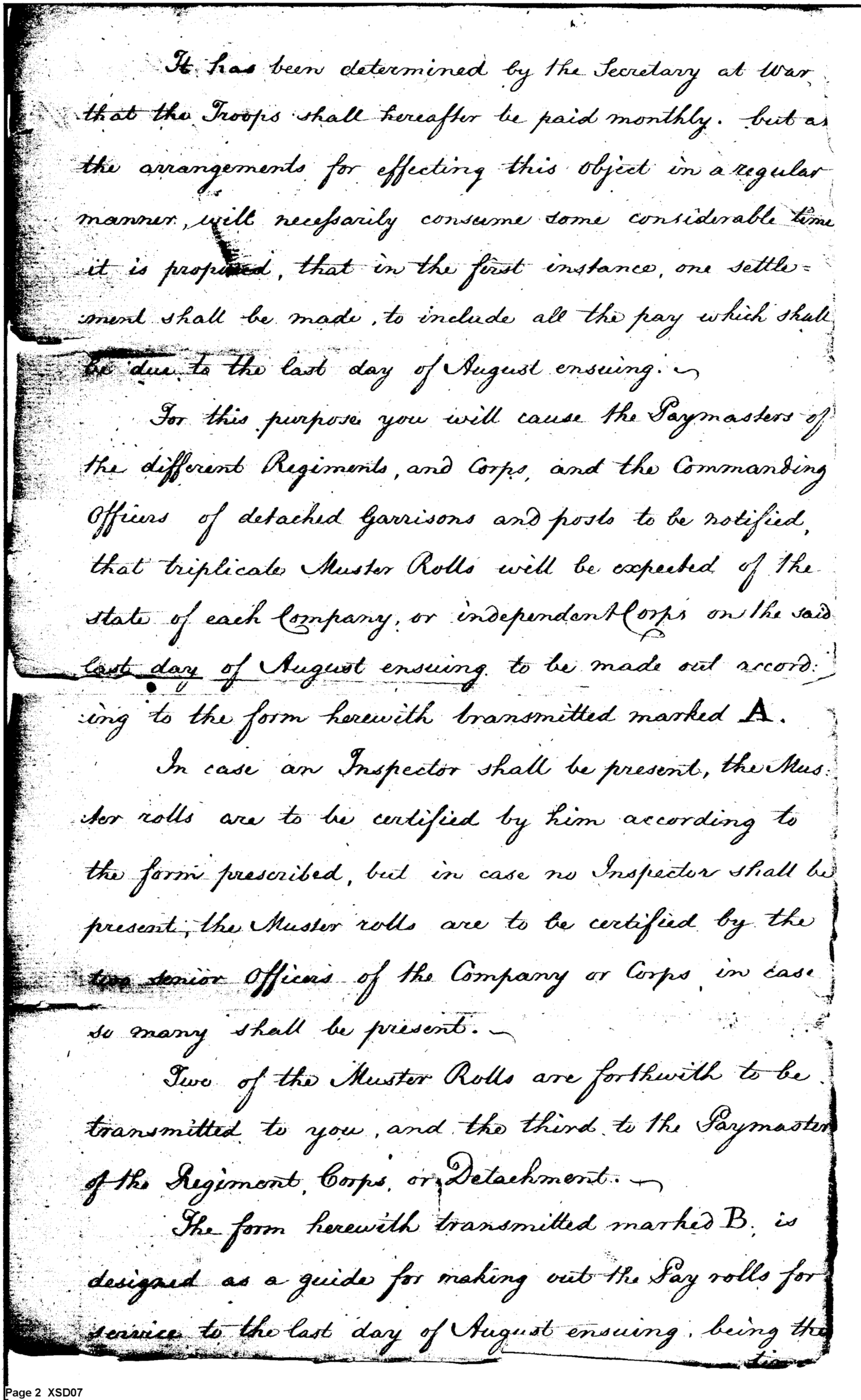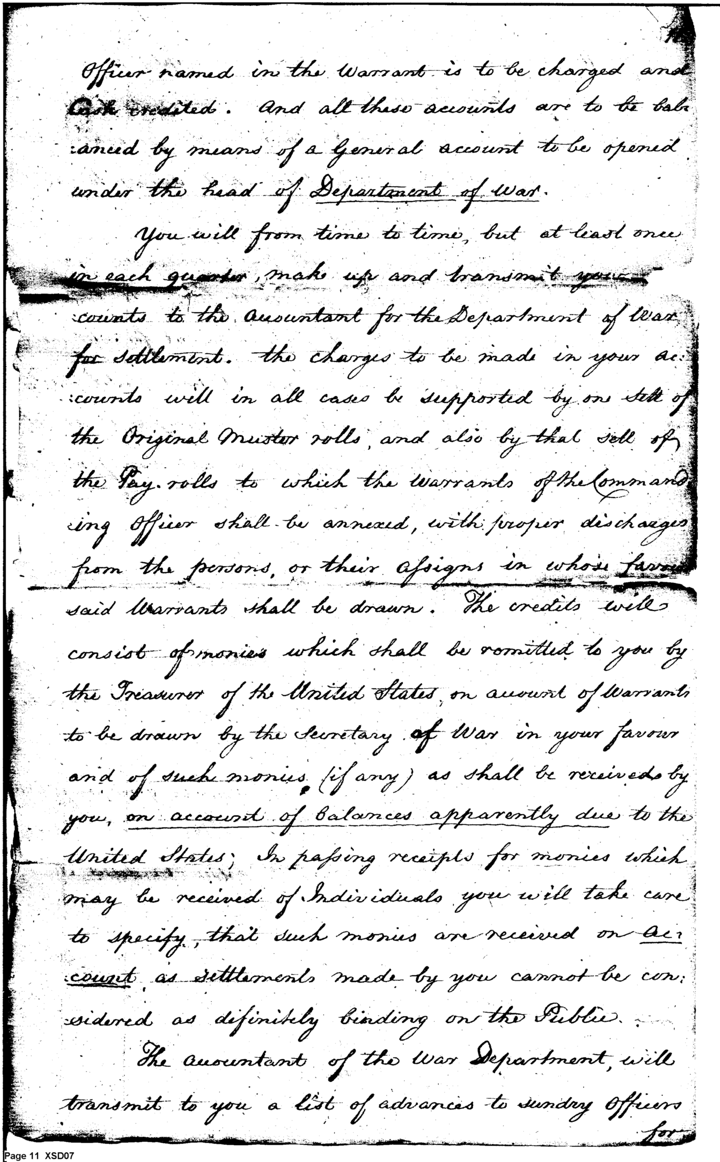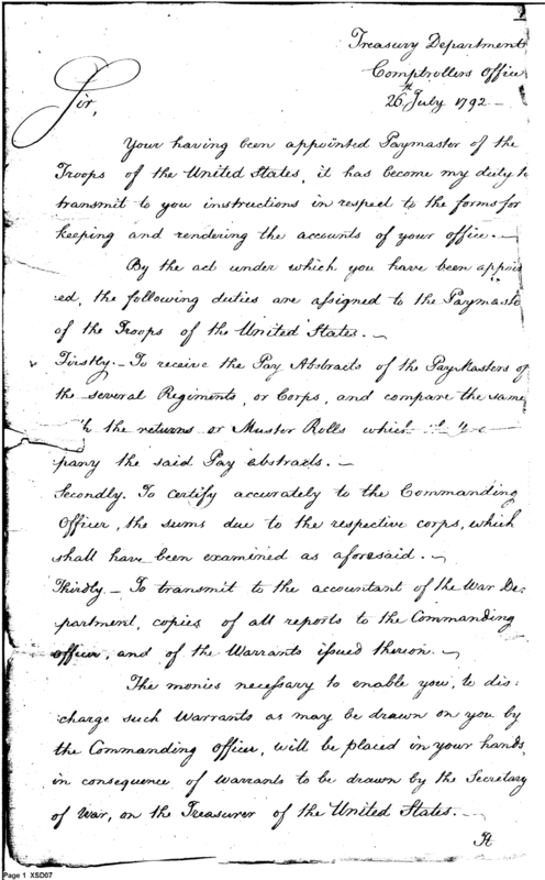 - Document: Instructions Regarding Duties of the Paymaster of the Troops