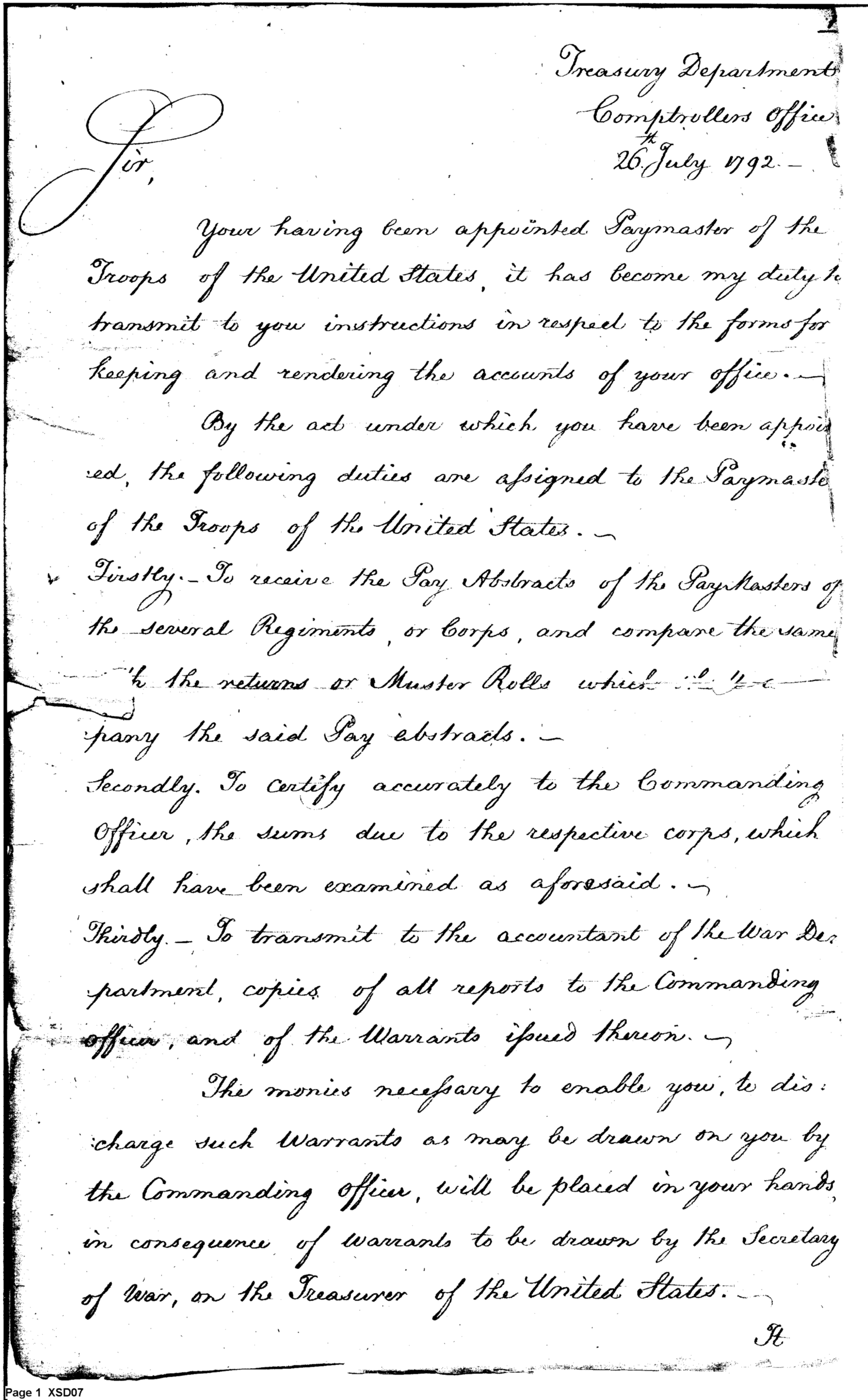 Document ViewerInstructions Regarding Duties of the Paymaster of the Troops