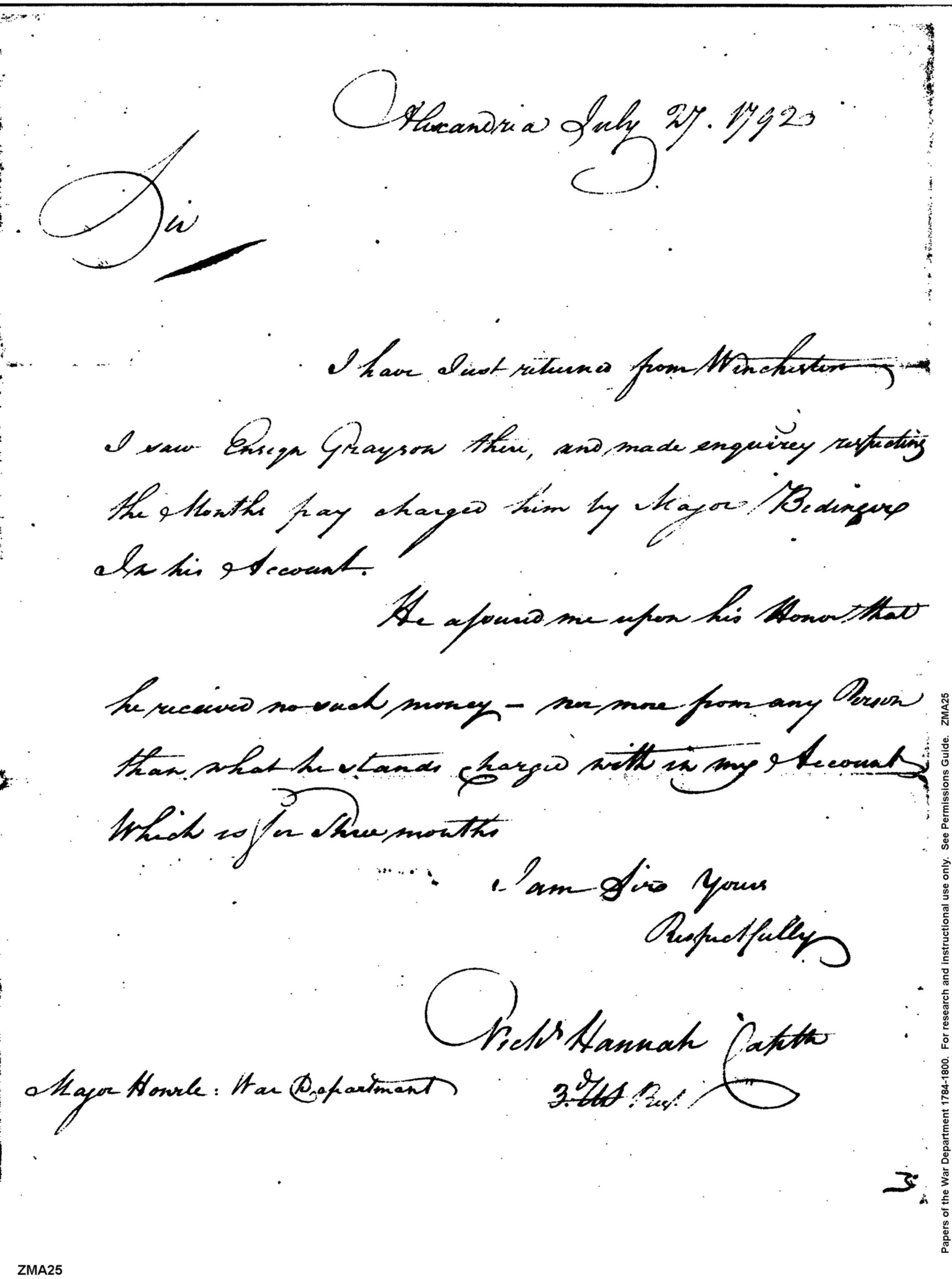 - Document: Captain Hannah's inquiry on Ensign Grayson's pay