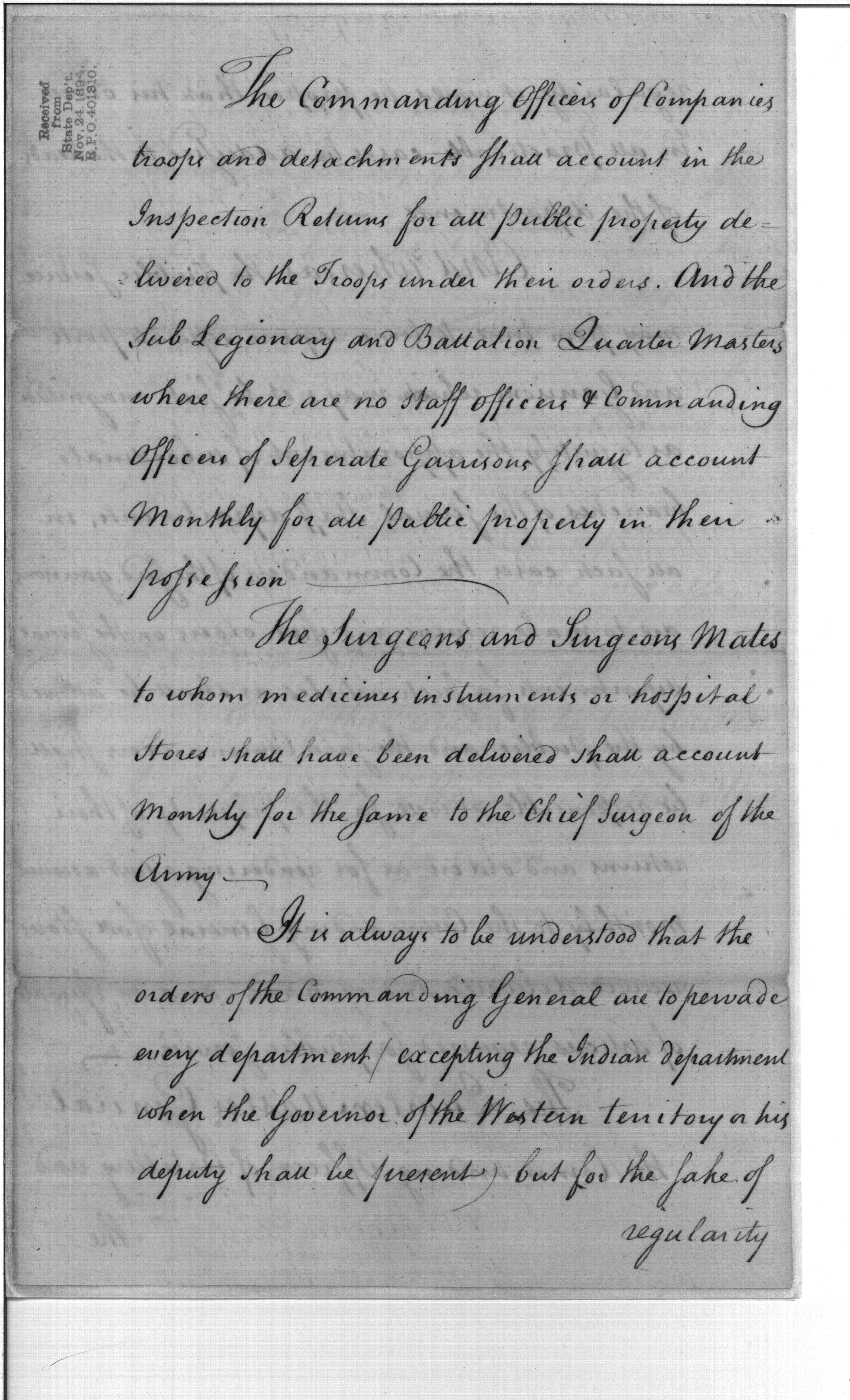 - Document: Regulations for the receiving, distributing, and accounting for all public property designed for the Army of the United States