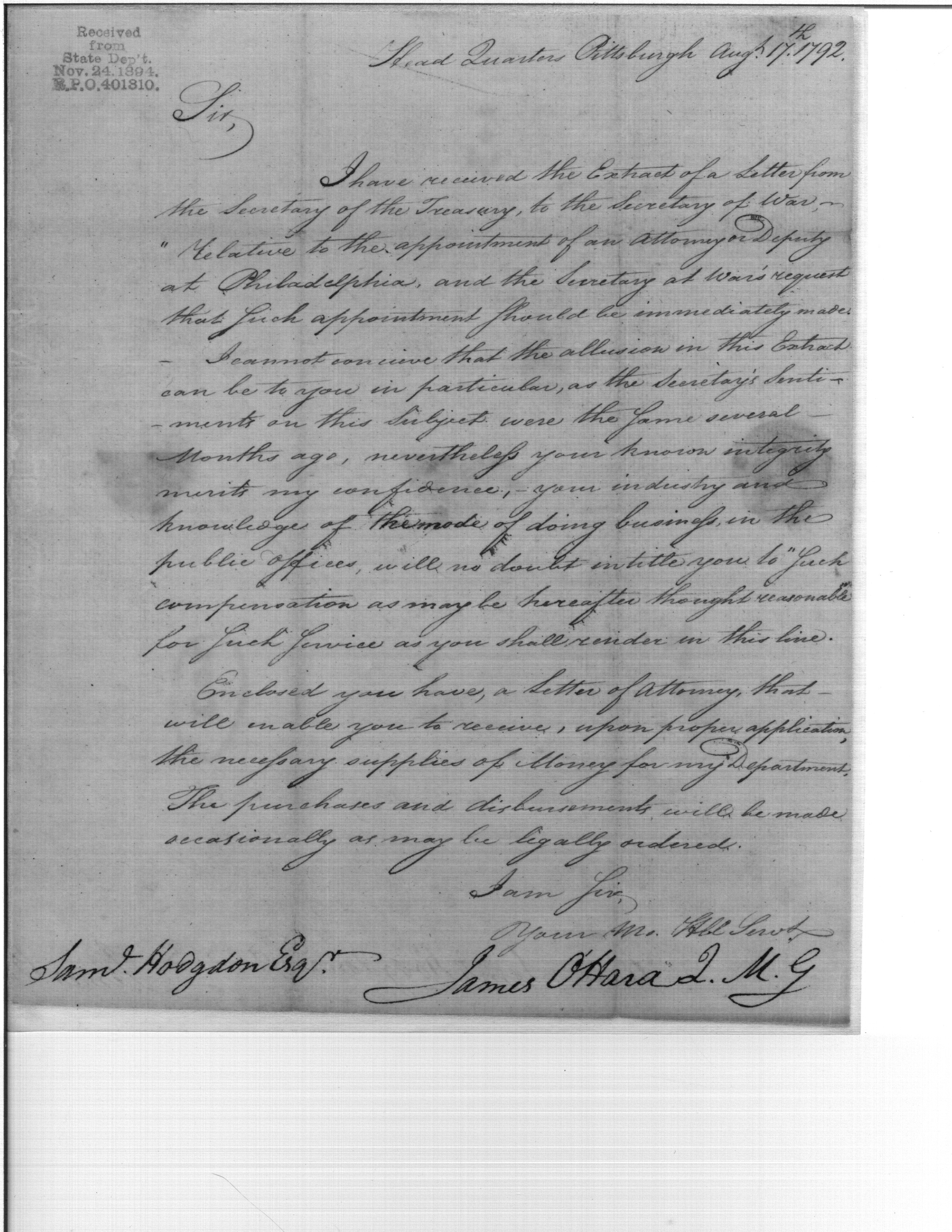 - In source: Collection: First Congress: President's Message Transmitting Reports from the Secretary of War to the Senate [1A-E4] (RG46)