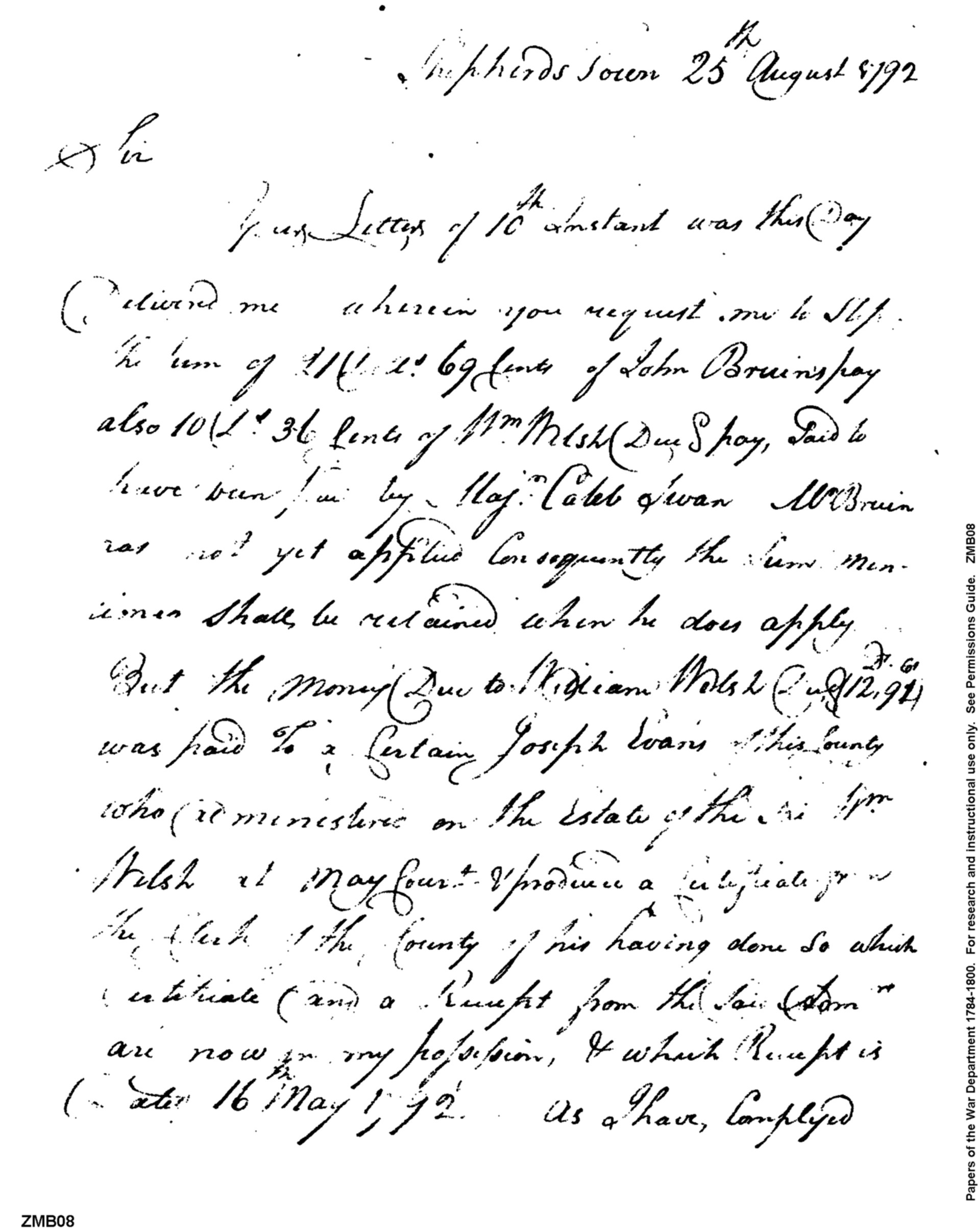 - Document: Letter from Henry Bedinger regarding pay for John Bruin, William Welsh