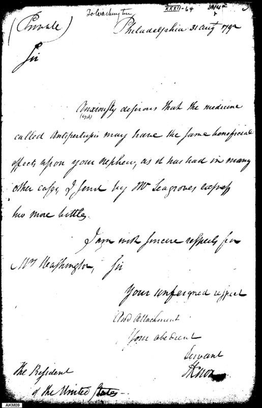 - Document: Knox Recommends Medicine for Washington's Nephew