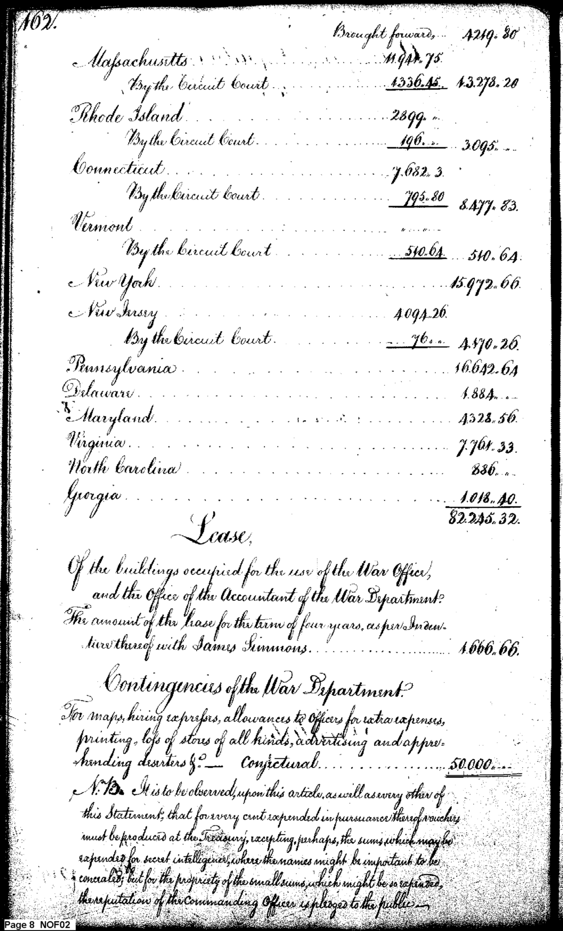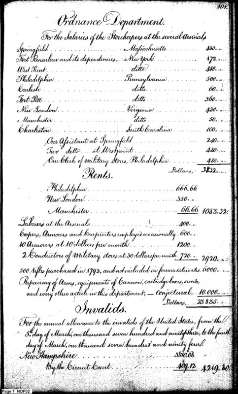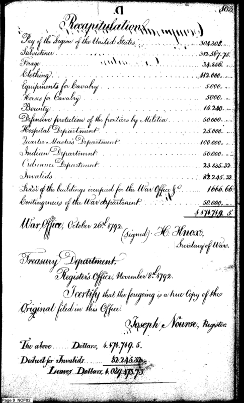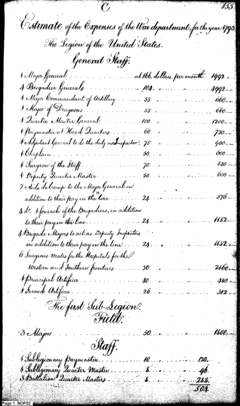 - Document: Estimate of War Department expenses for 1793