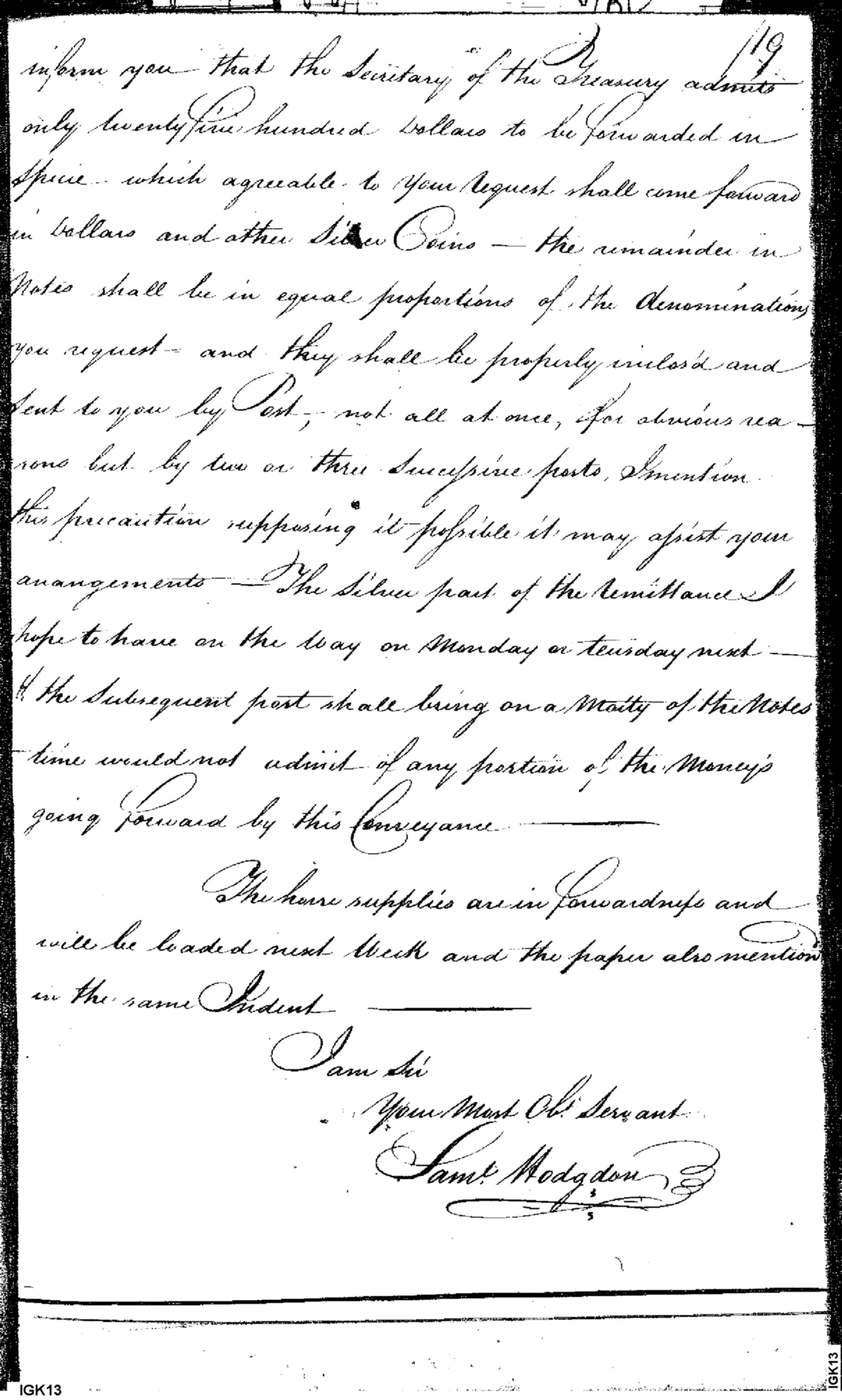 Document ViewerRequest for money, forwarding of specie, horse supplies