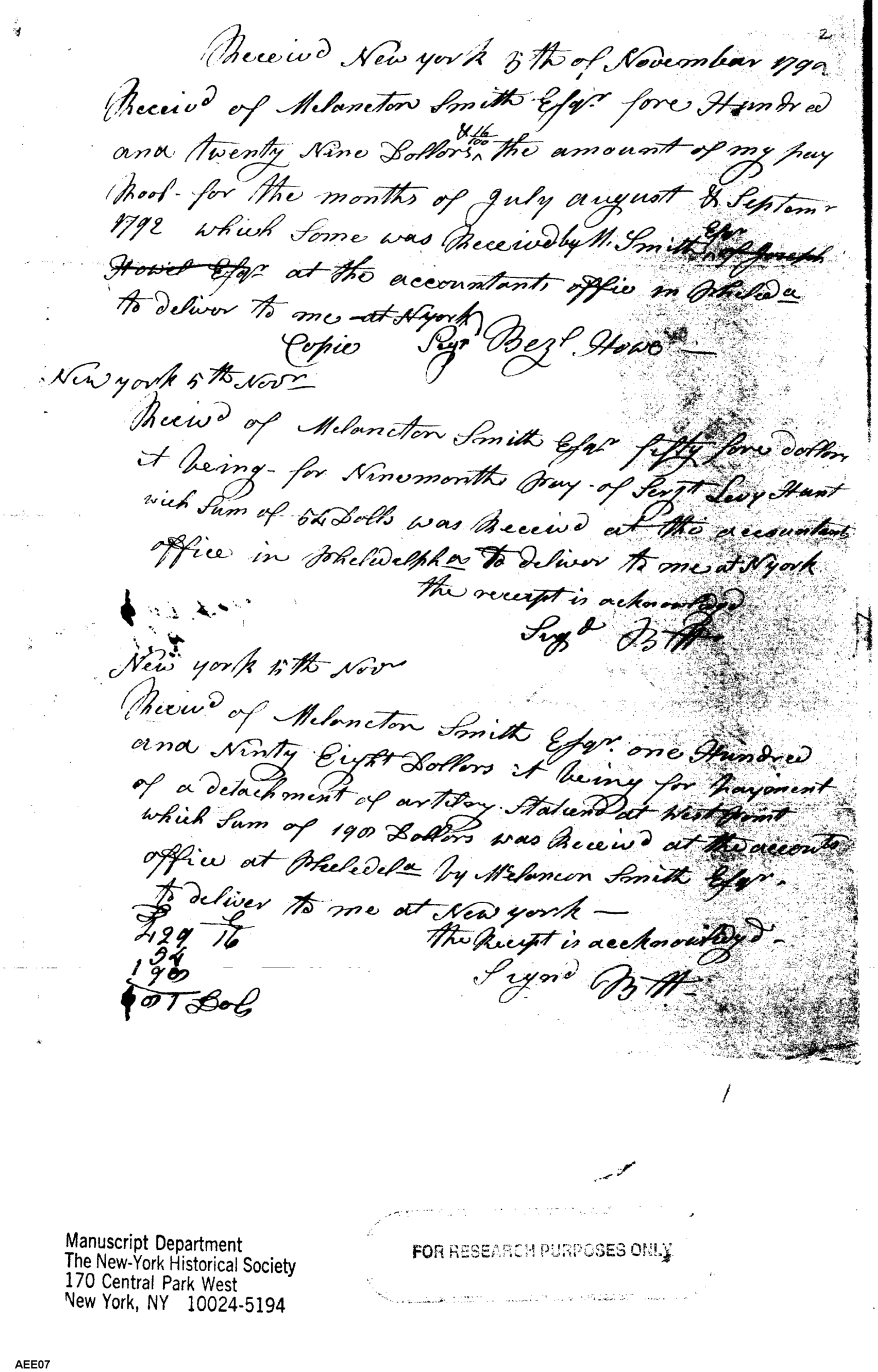 Entries of Receipts