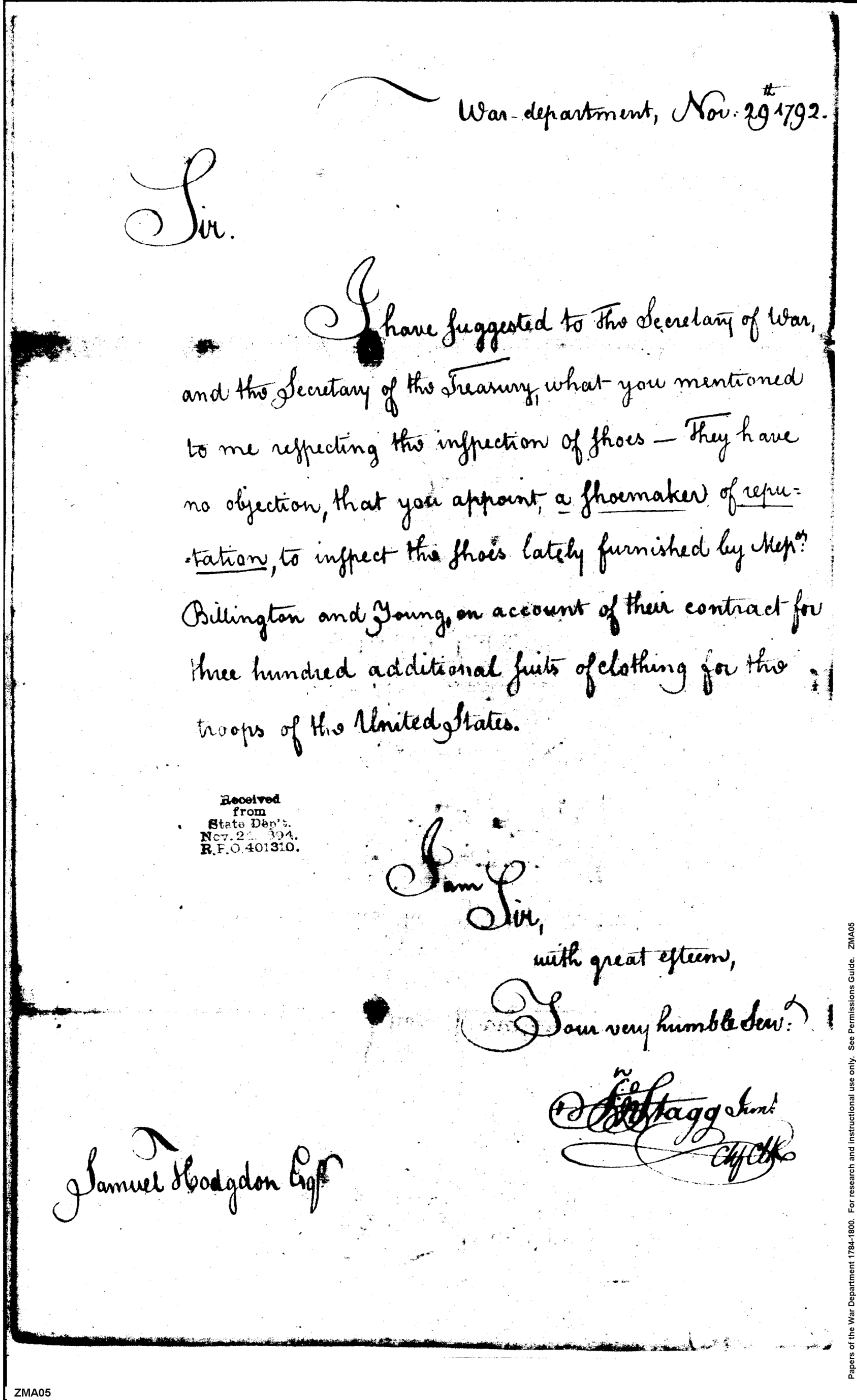 - In source: Collection: Second Congress: Reports and Communications Submitted to the Senate by the Secretary of the Treasury [2A-F2] (RG46)