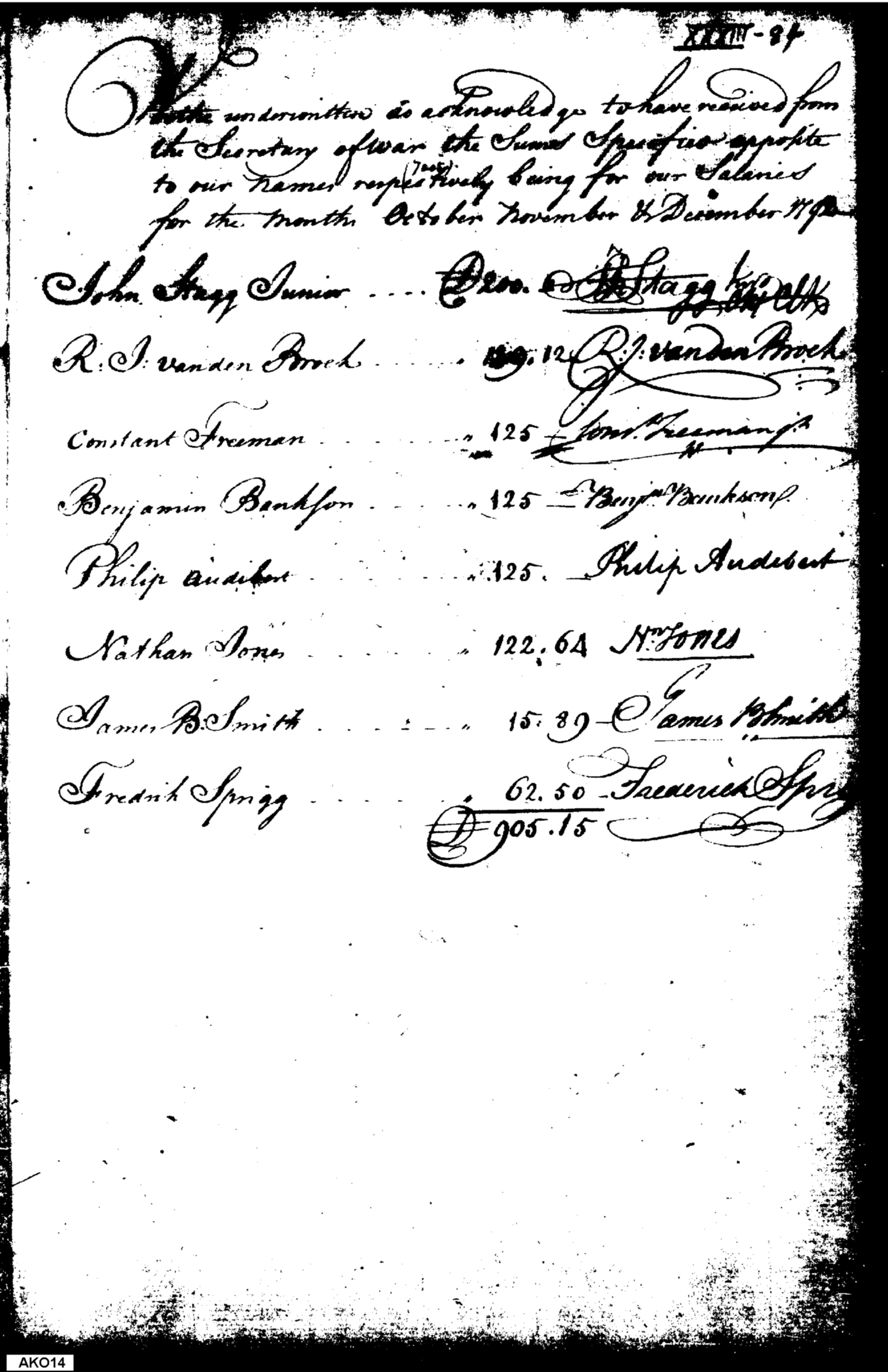 - Document: Receipt, War Office salaries paid