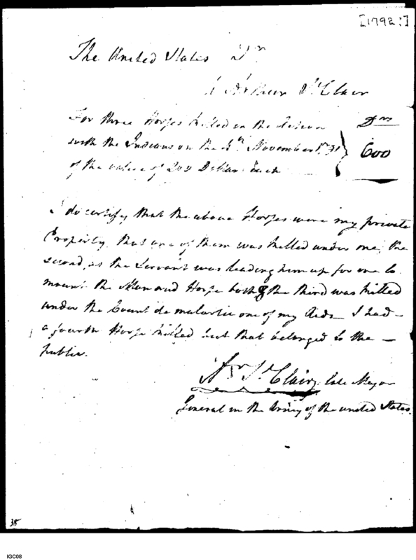 - Document: Payment for St. Clair's horses killed during the Expedition of November 4, 1792