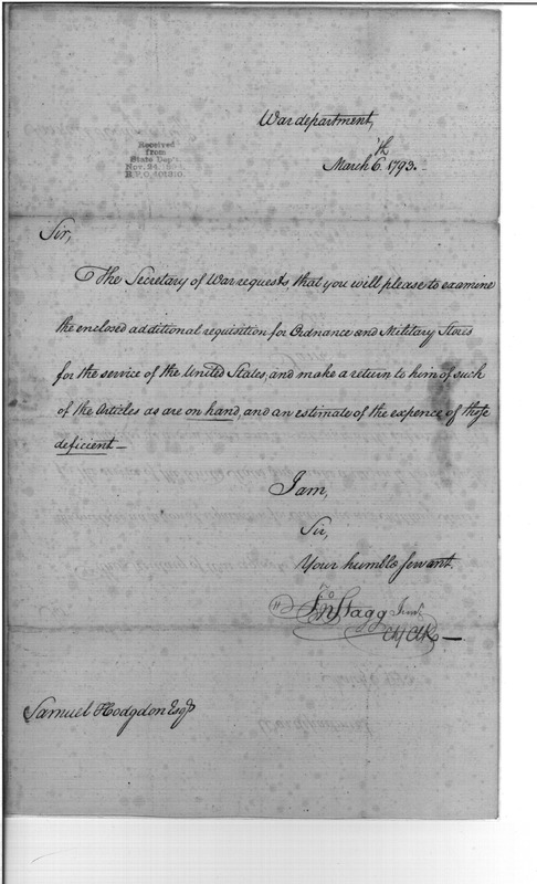 - In source: Collection: Post Revolutionary War Papers, 1784-1815. (RG94)